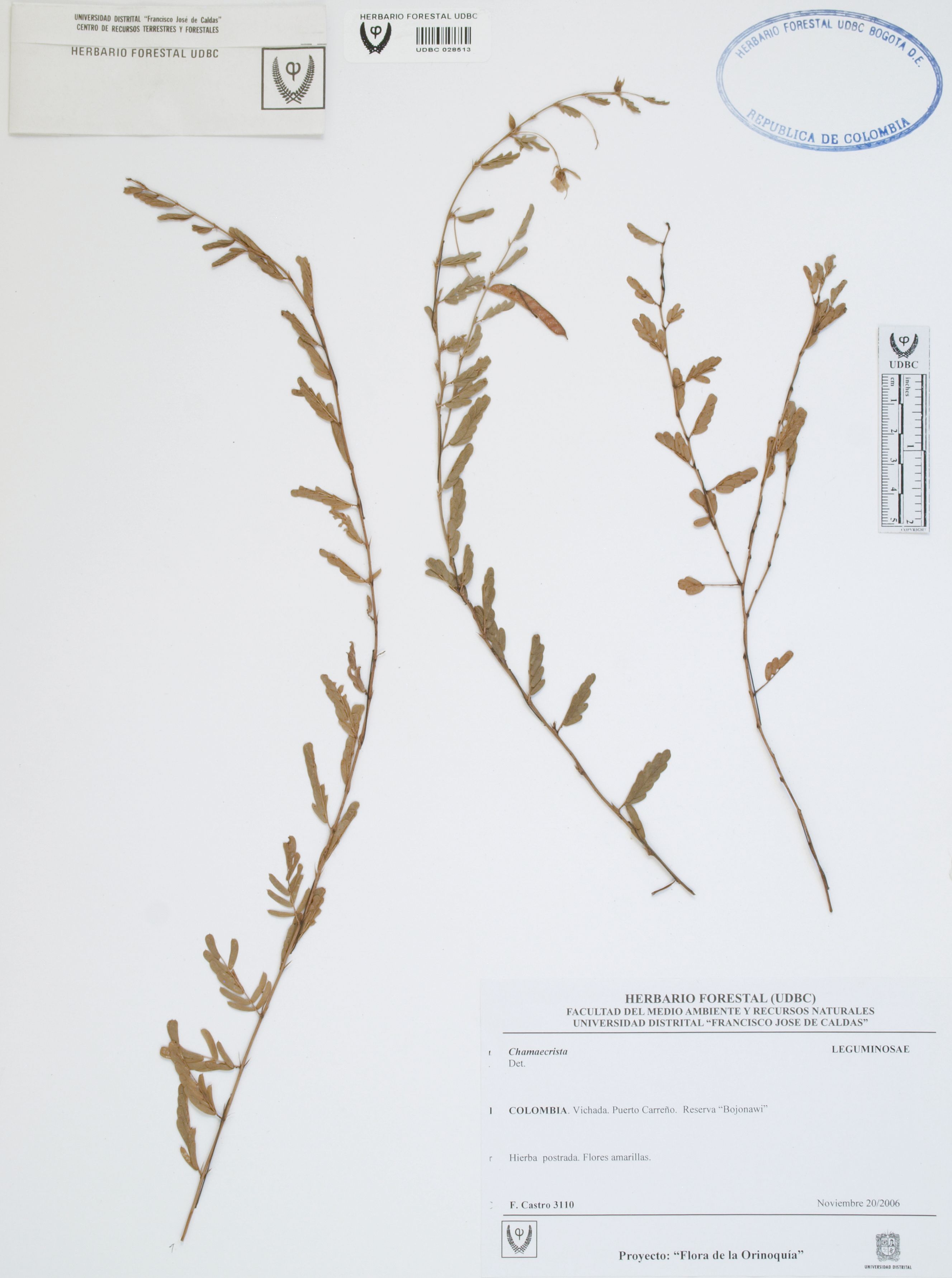 Fotografía del ejemplar Castro, F. 3110, determinado como Chamaecrista sp.