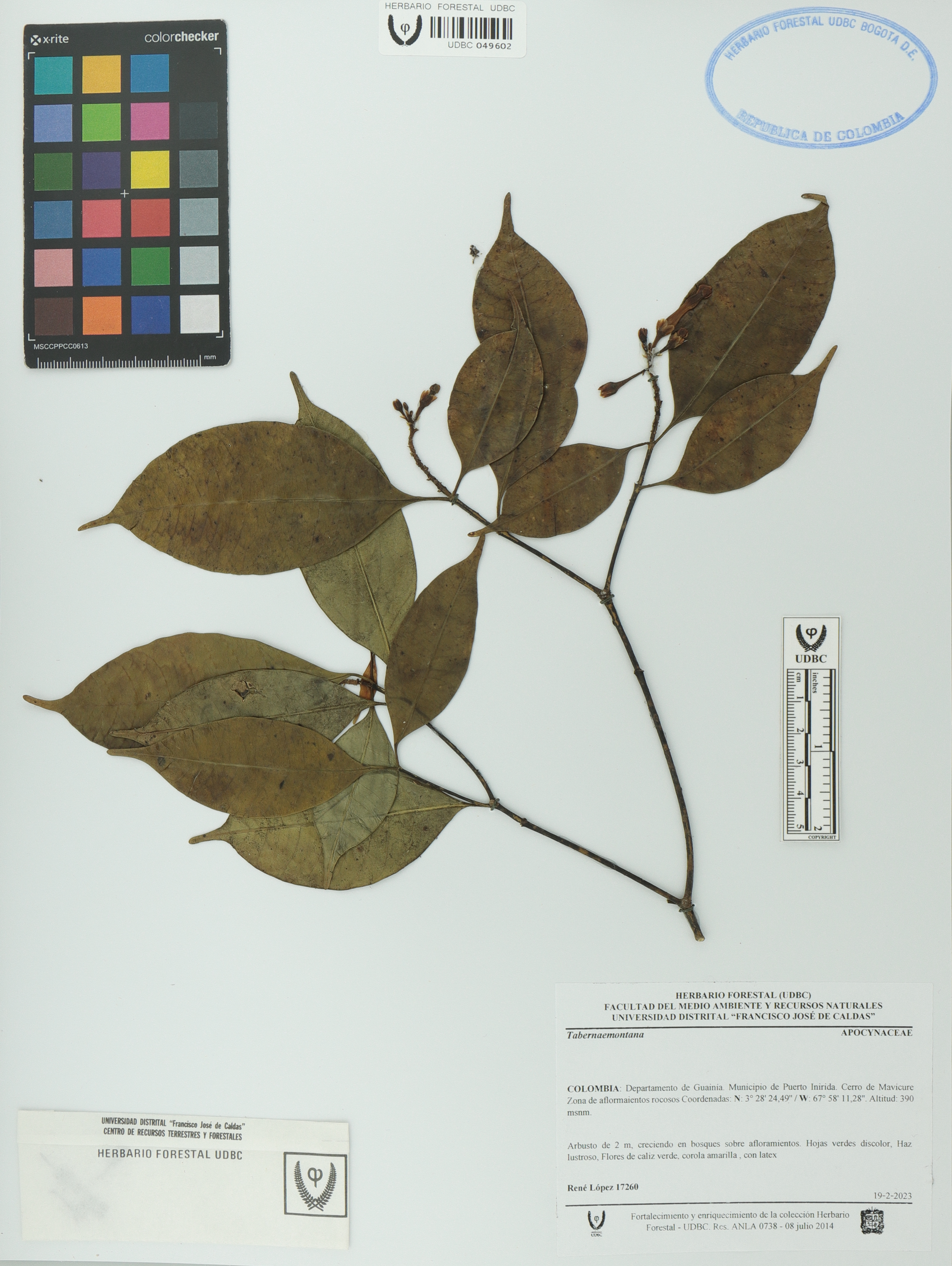 Fotografía del ejemplar López, René 17260, determinado como Tabernaemontana sp.