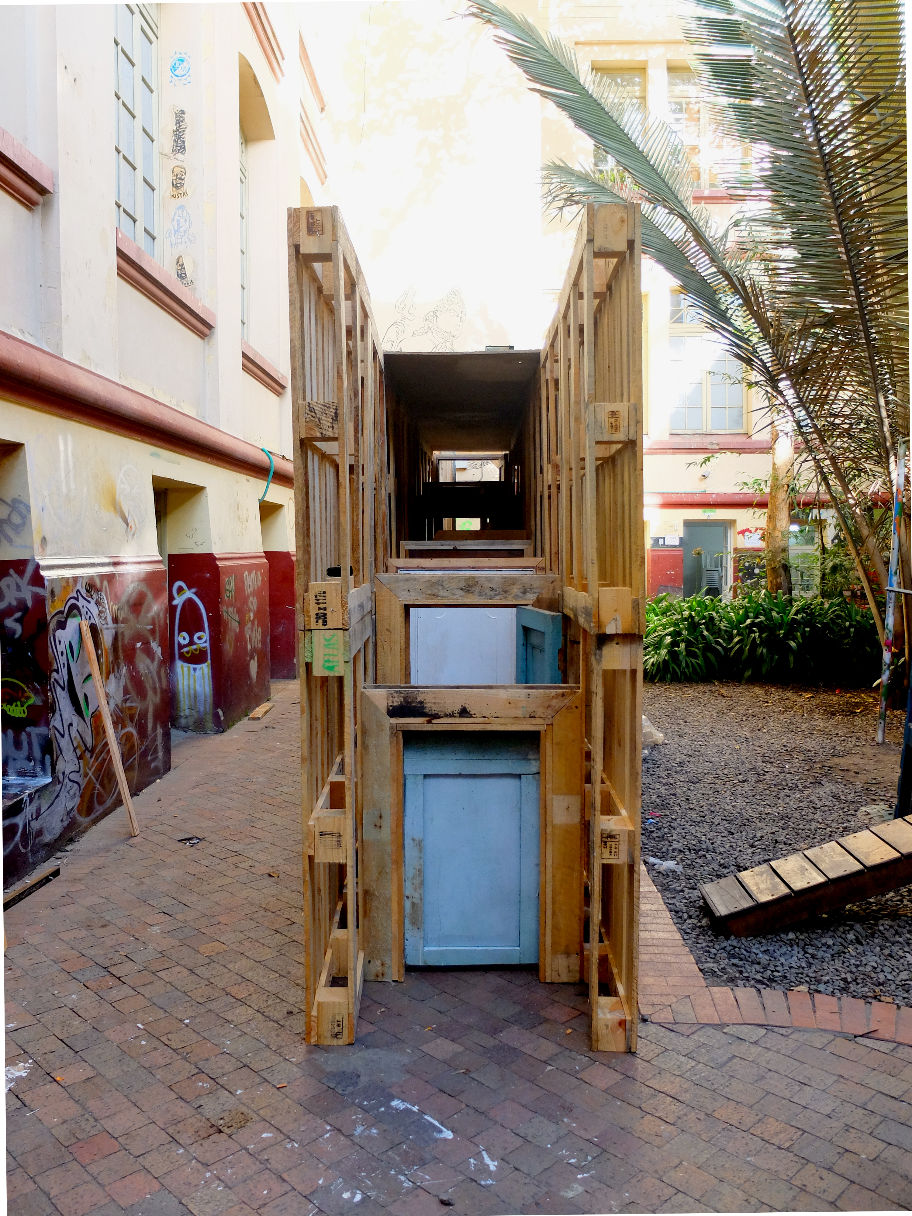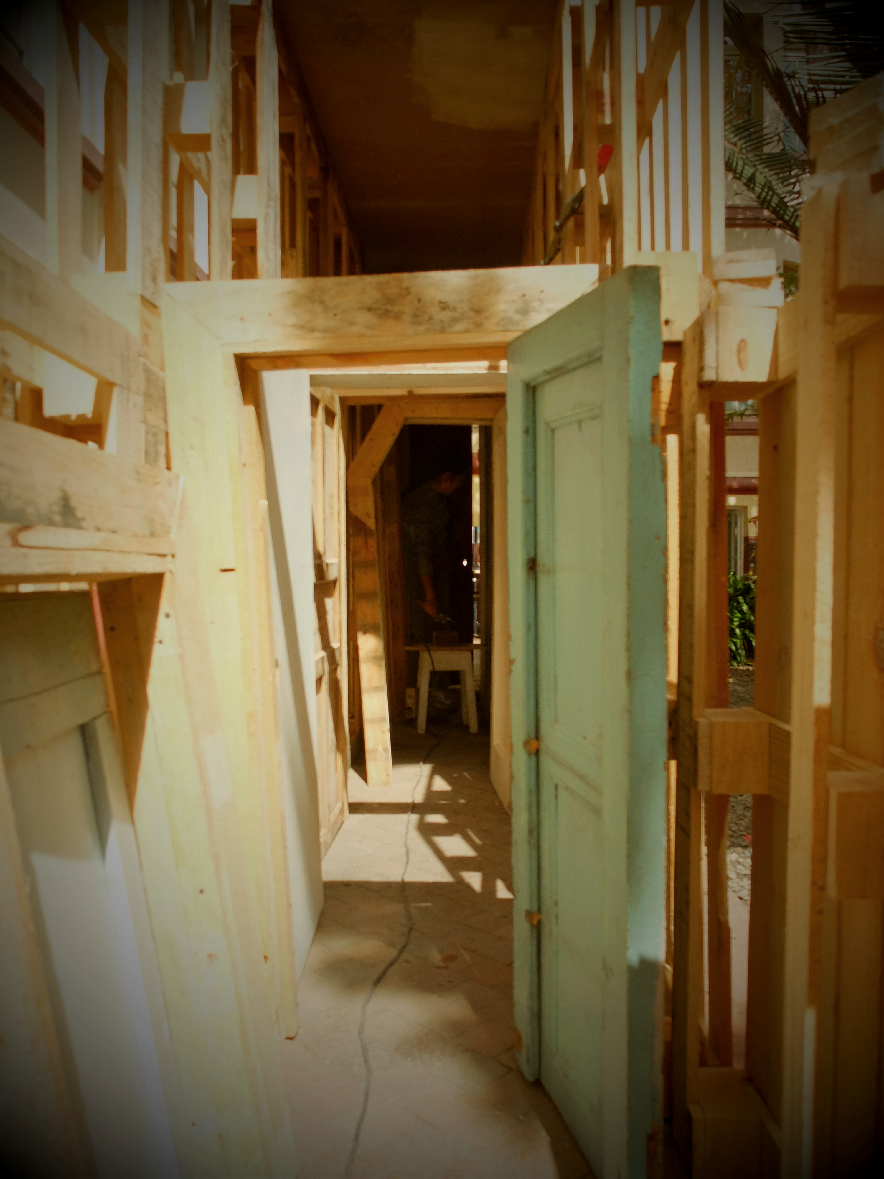 La puerta dentro del ensamblaje escultórico es utilizada aquí como barrera, para hacer referencia a un lugar o situación poco habitual. Le impone una distancia en el presente al sujeto que se introduzca dentro de la pieza. Para, con ese hecho, trasladarlo y posicionarlo dentro de sus propios recuerdos o formas de percibir. Se considera aquí que el recuerdo acarrea una poderosa carga conceptual, sirviendo como medio para reestructurar vivencias desde la infancia. Lo cual lleva a que nuestra construcción racional utilice la fantasía como forma de completar los espacios que no se comprenden bien o no están ligados a la memoria. Así, el recuerdo se manifiesta como una tergiversación inmediata de la realidad.