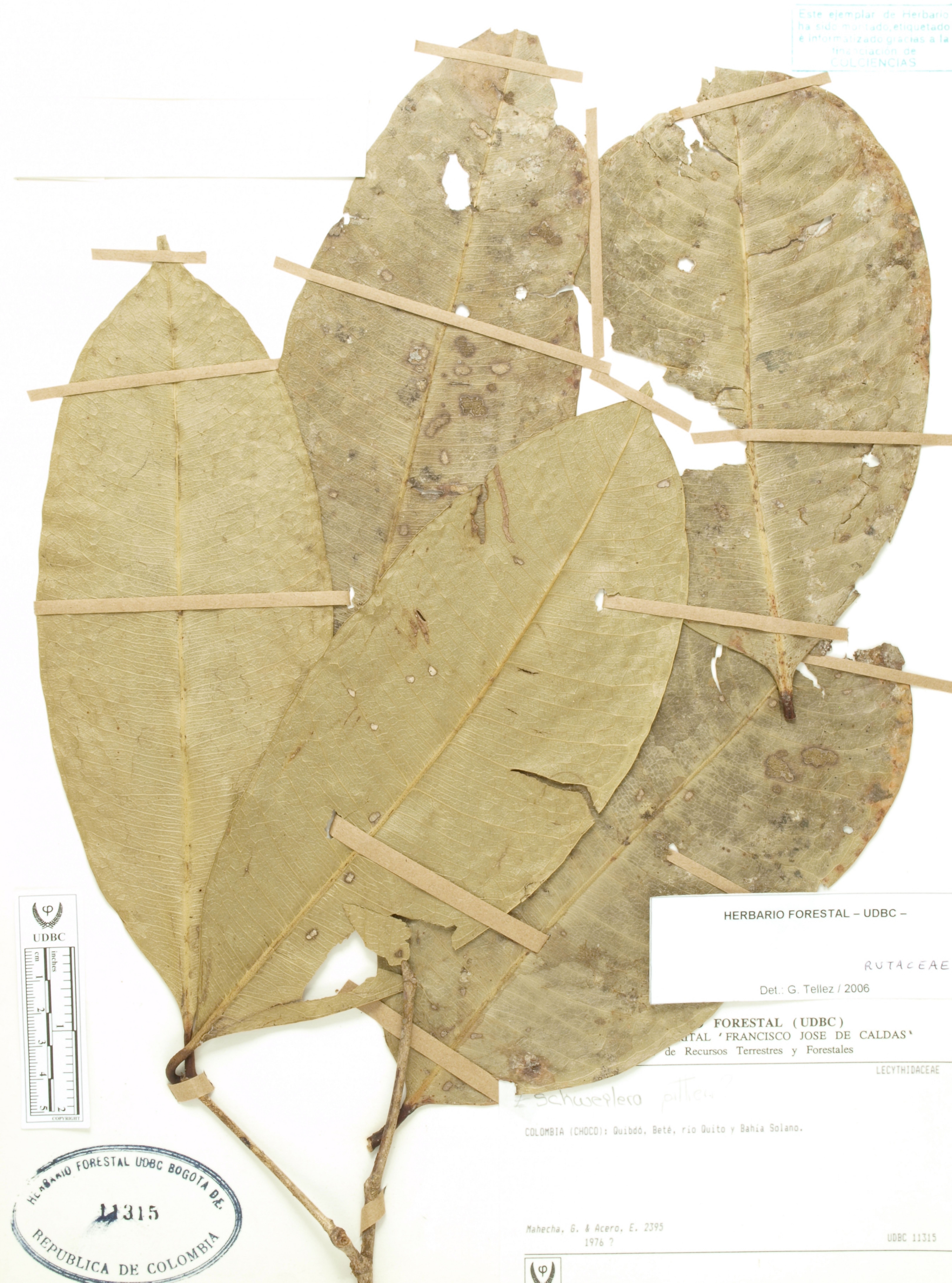 Fotografía del ejemplar Mahecha, G. 2395, determinado como Myrtaceae en el año 2022