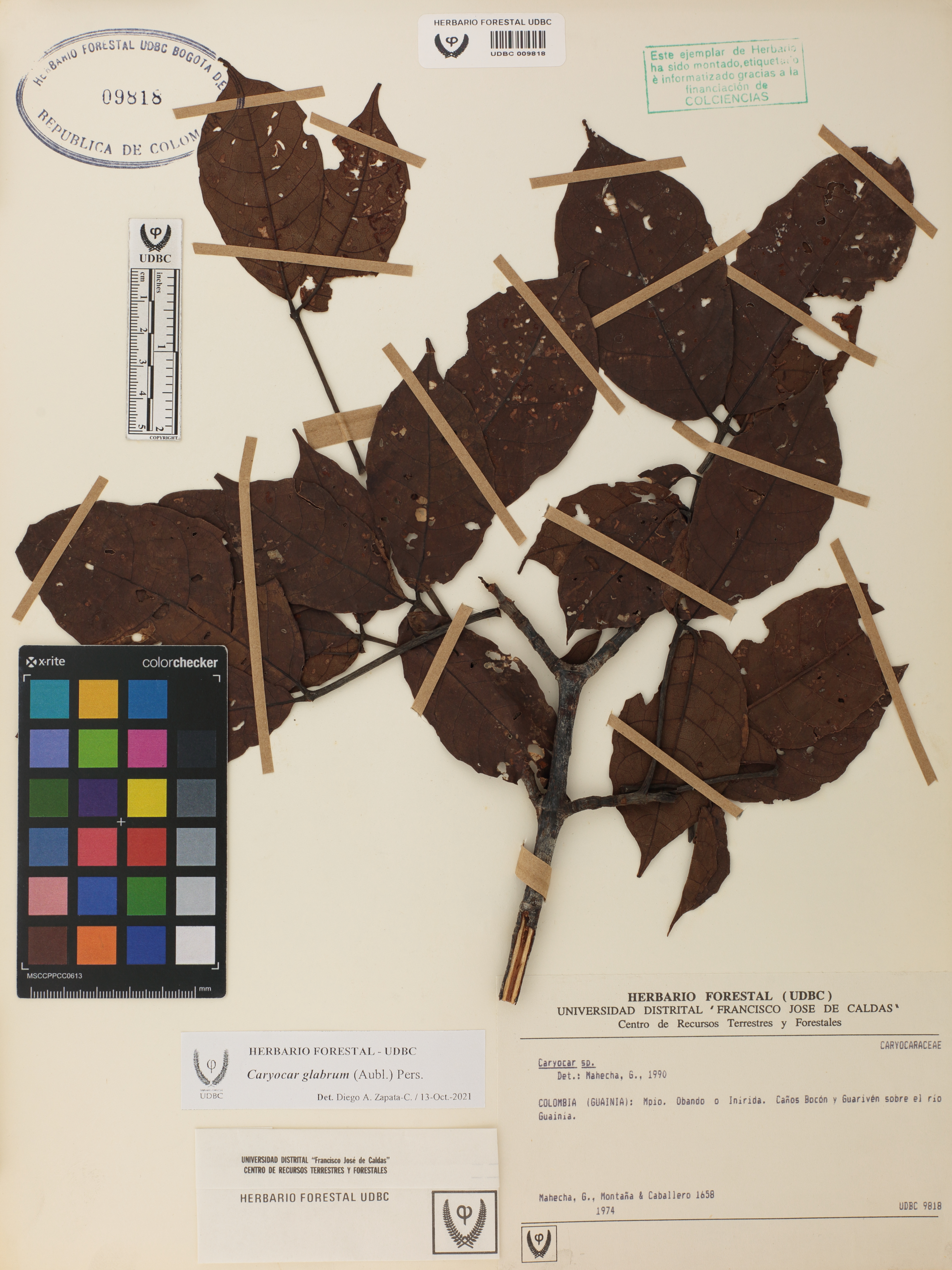 Fotografía del ejemplar Mahecha, G. 1658, determinado como Caryocar glabrum en el año 2021