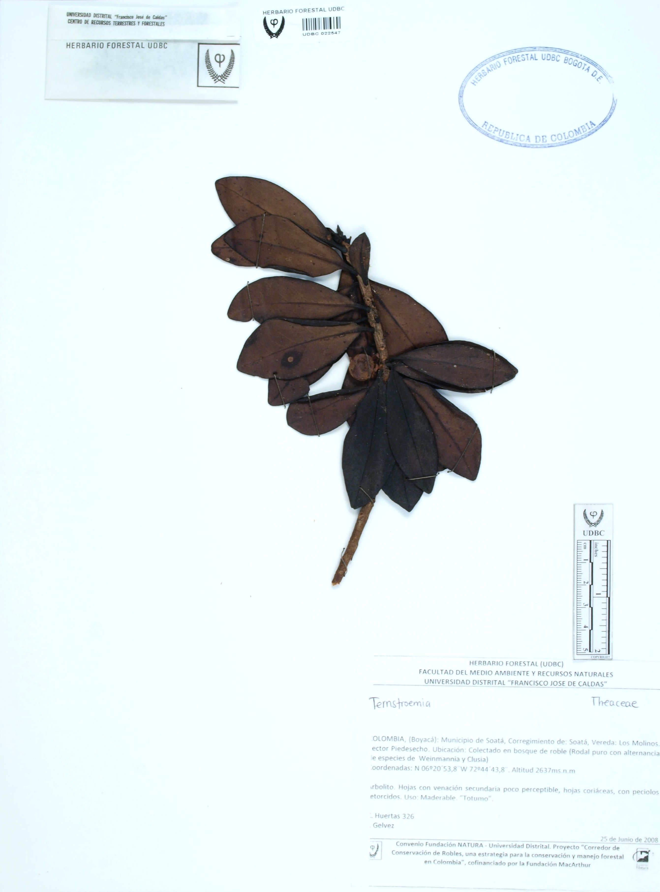 Fotografía del ejemplar Huertas, C. 326, determinado como Ternstroemia sp.