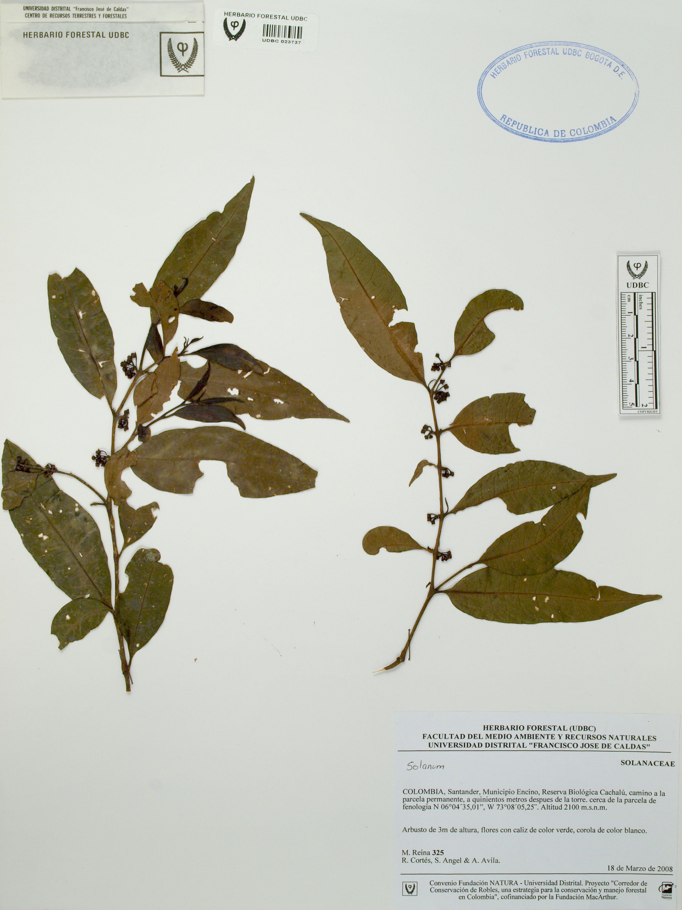 Fotografía del ejemplar Reina, M. 325, determinado como Solanum sp.