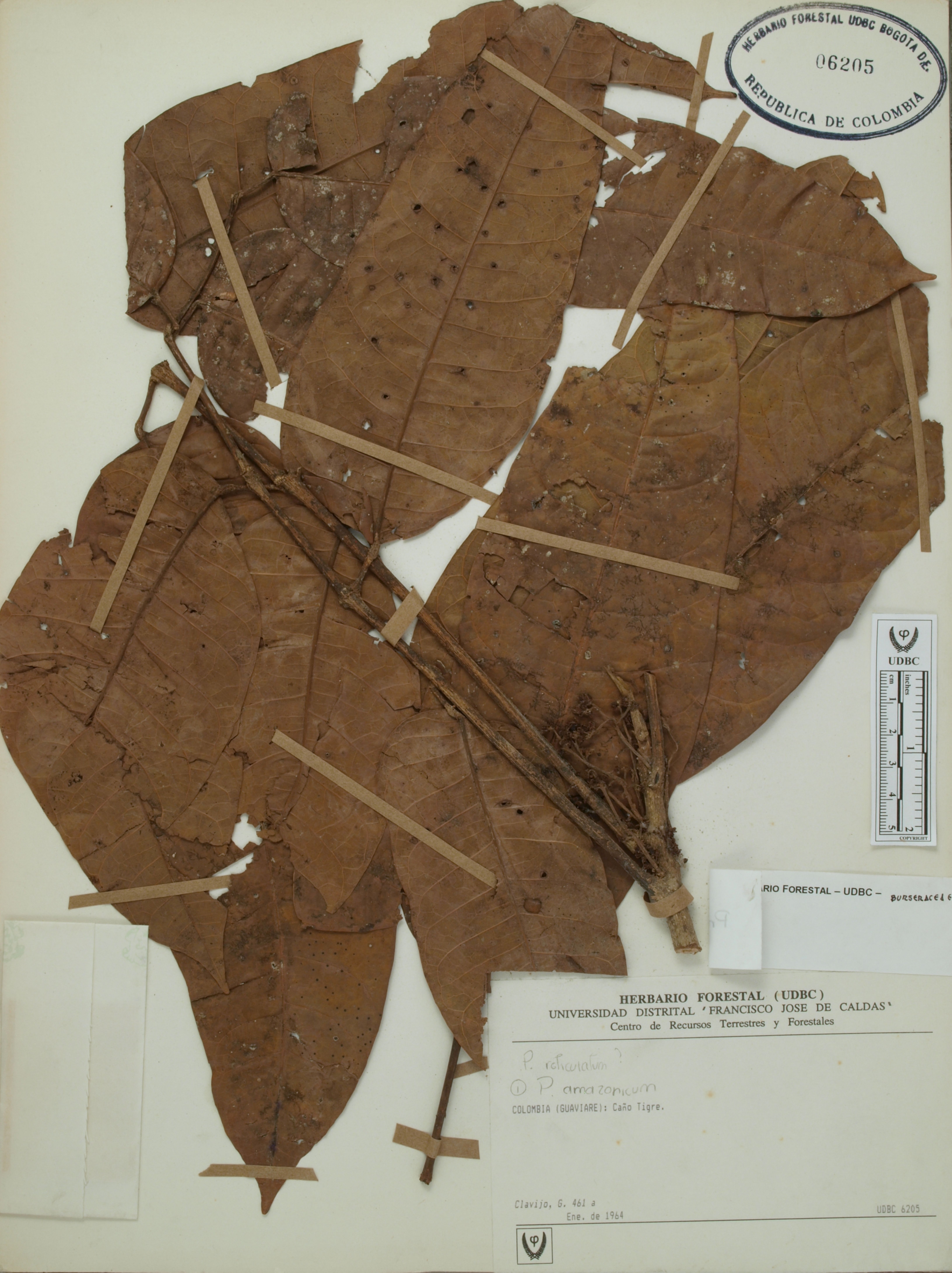 Fotografía del ejemplar Clavijo, G. 461, determinado como Protium sp.