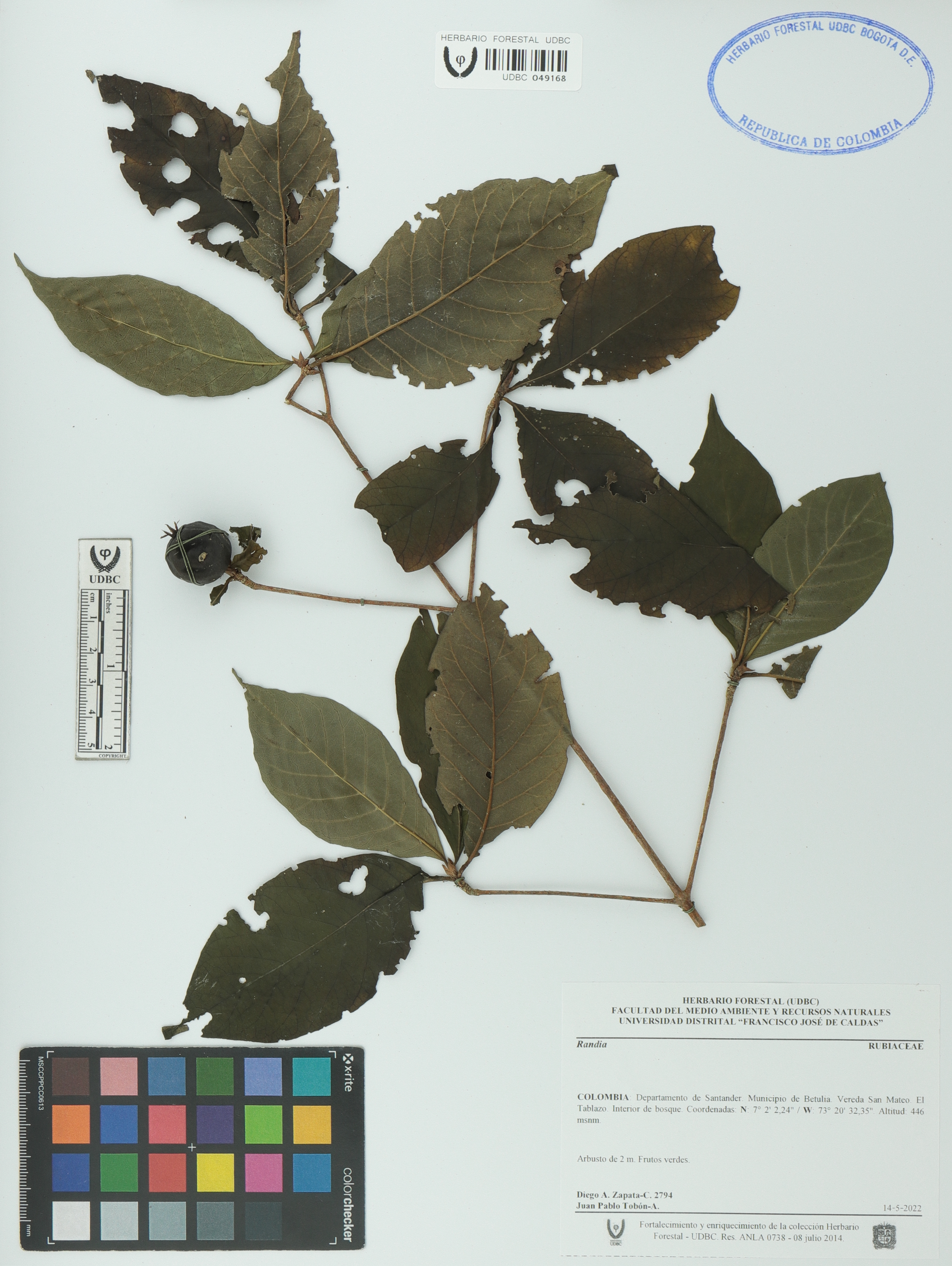 | dc.description | Fotografía del ejemplar Zapata-C., D. 2794, determinado como Randia sp. | |