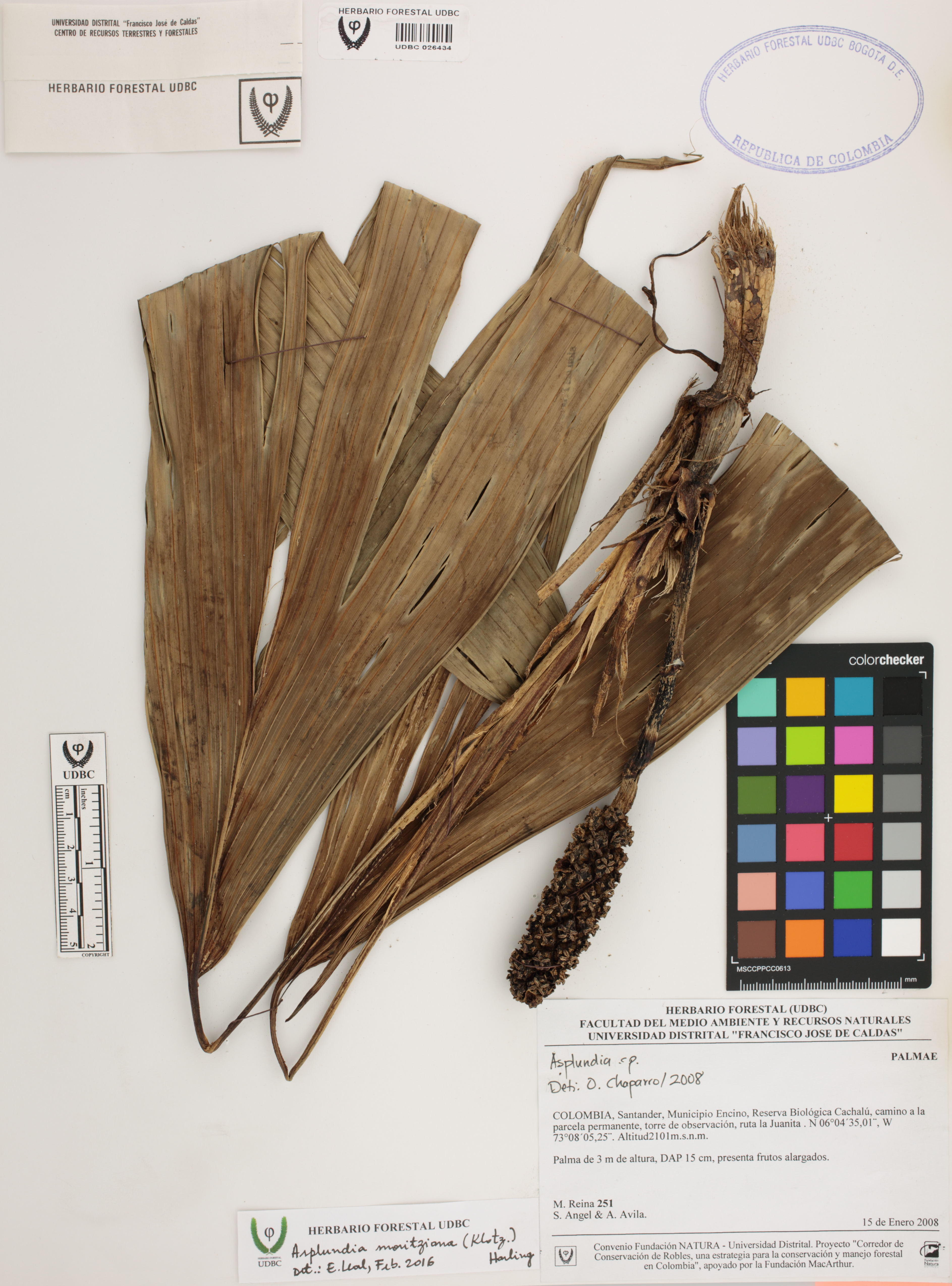 Fotografía del ejemplar Reina, M. 251, determinado como Asplundia moritziana en el año 2016