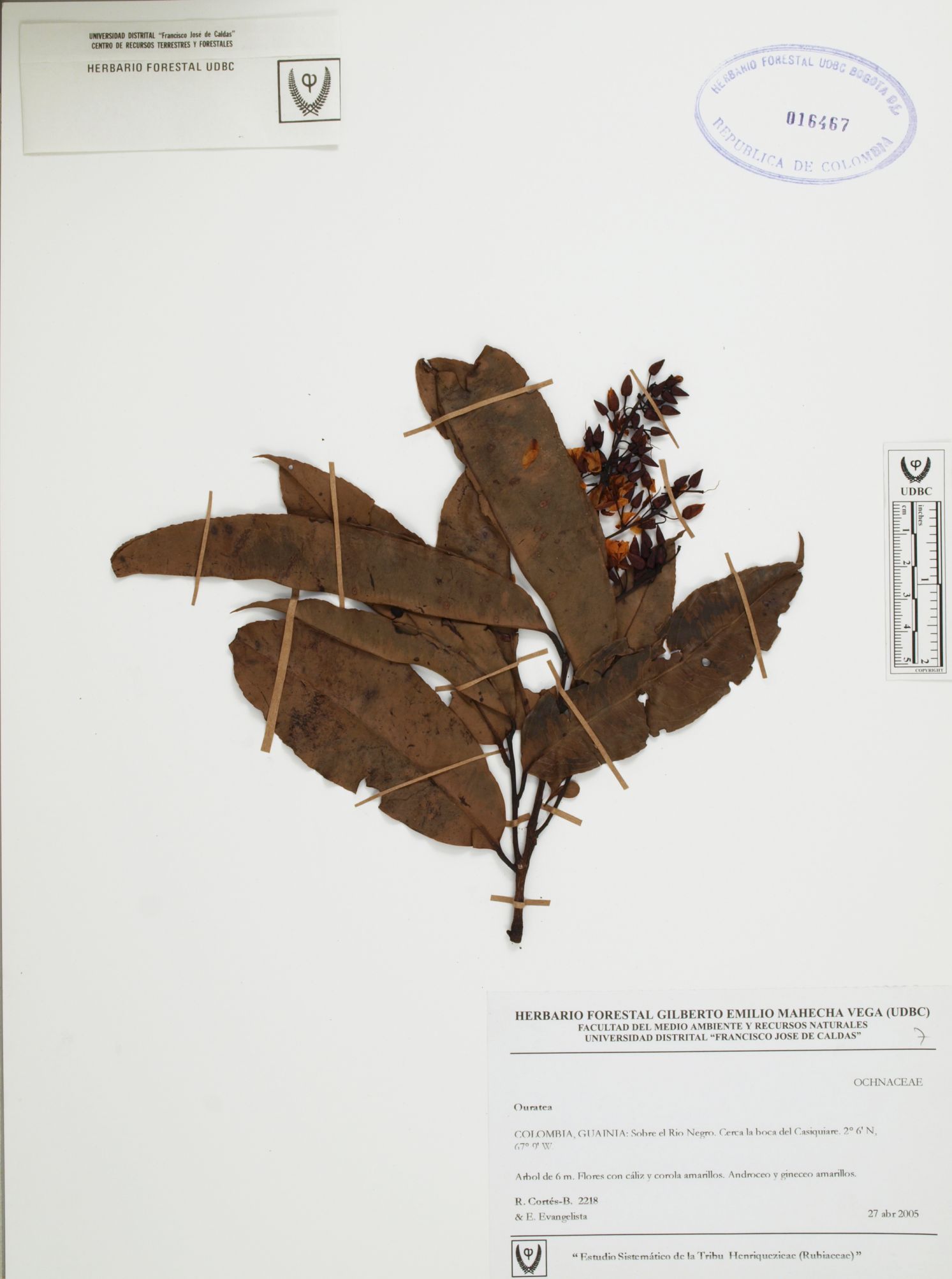 Fotografía del ejemplar Cortés-B., R. 2218, determinado como Ouratea sp.