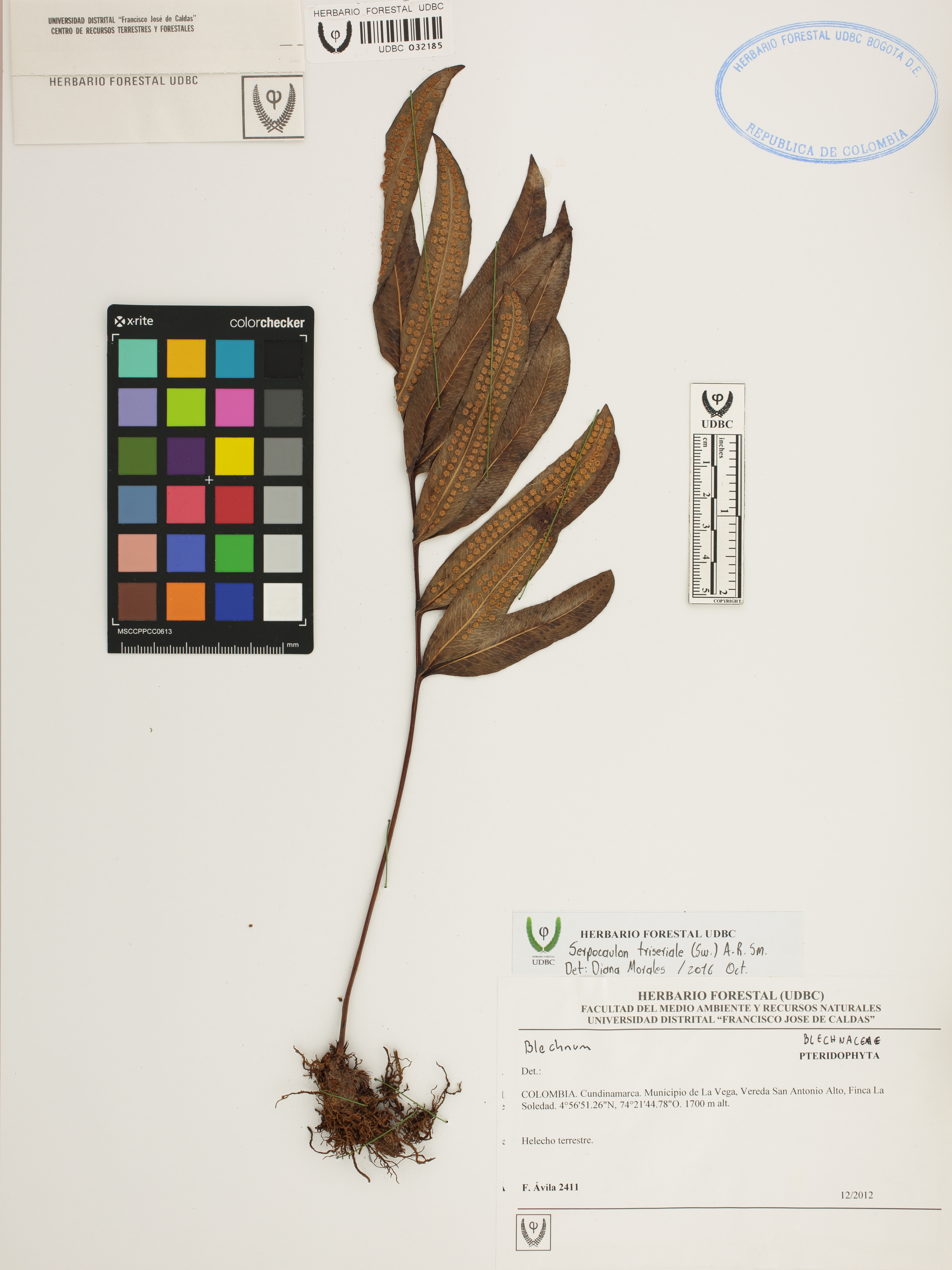 Fotografía del ejemplar Ávila, F. 2411, determinado como Serpocaulon triseriale en el año 2016