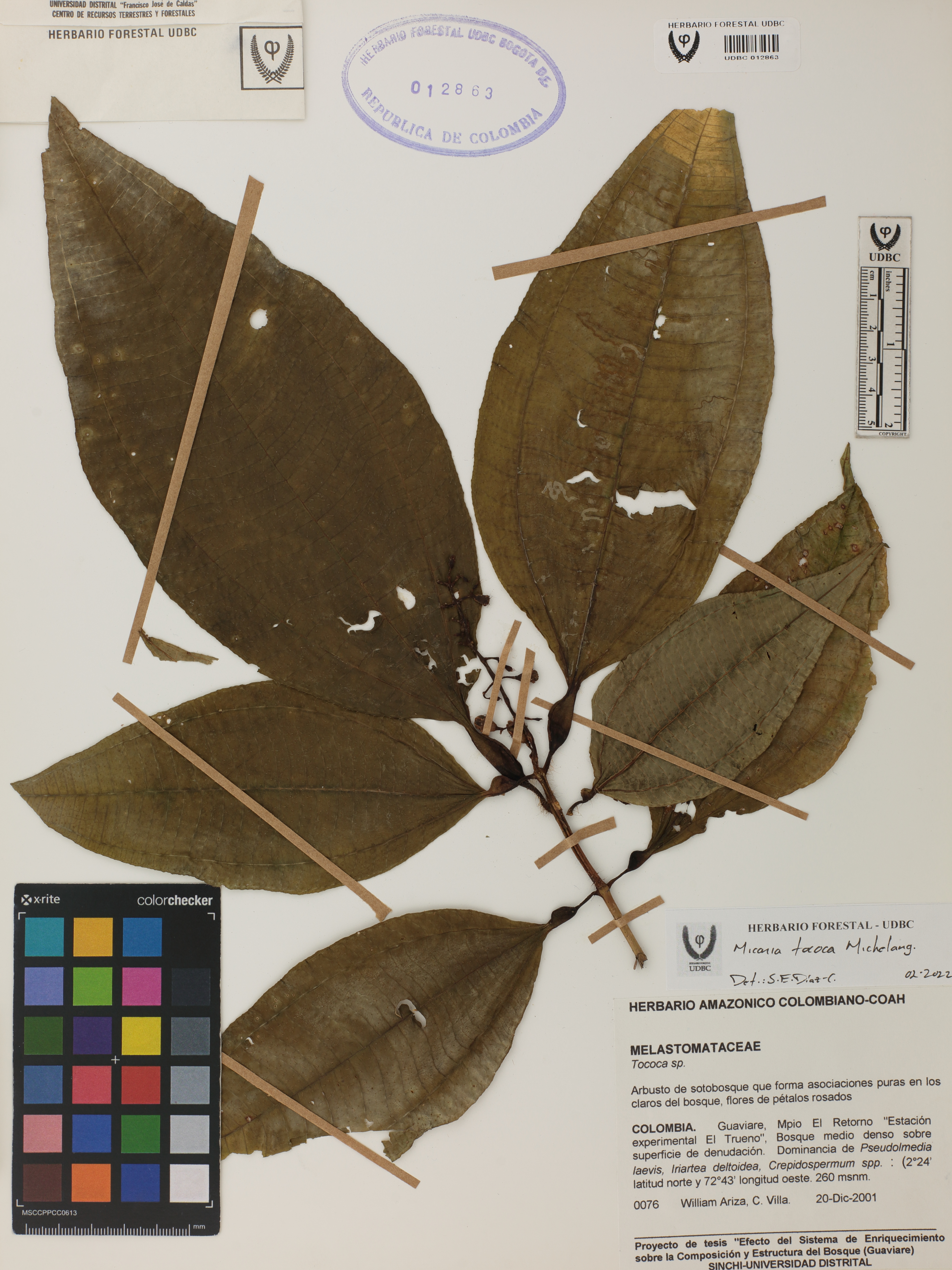 Fotografía del ejemplar Ariza, W. 76, determinado como Miconia tococa en el año 2022