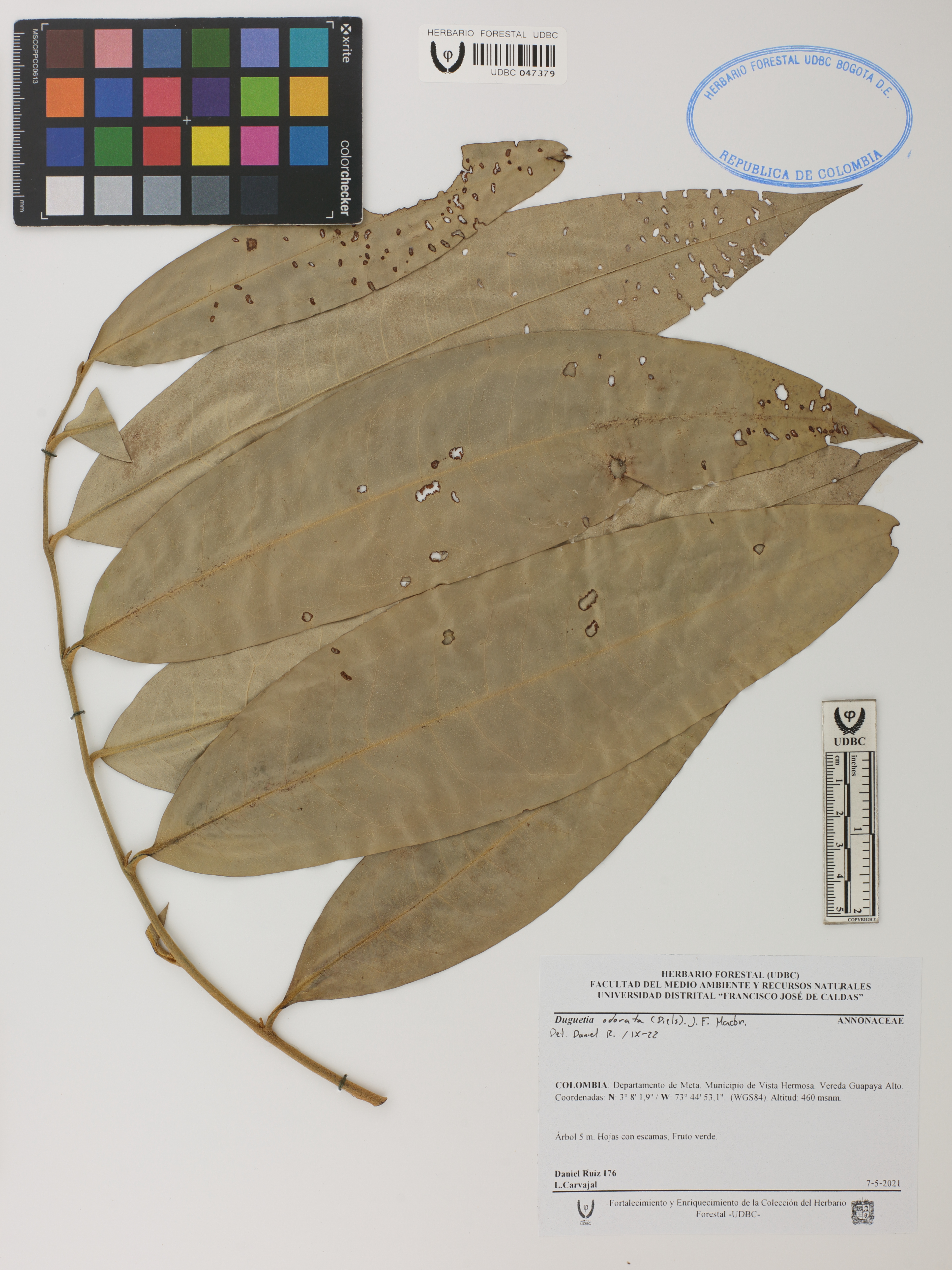 Fotografía del ejemplar Ruiz, Daniel 176, determinado como Duguetia odorata en el año 2022
