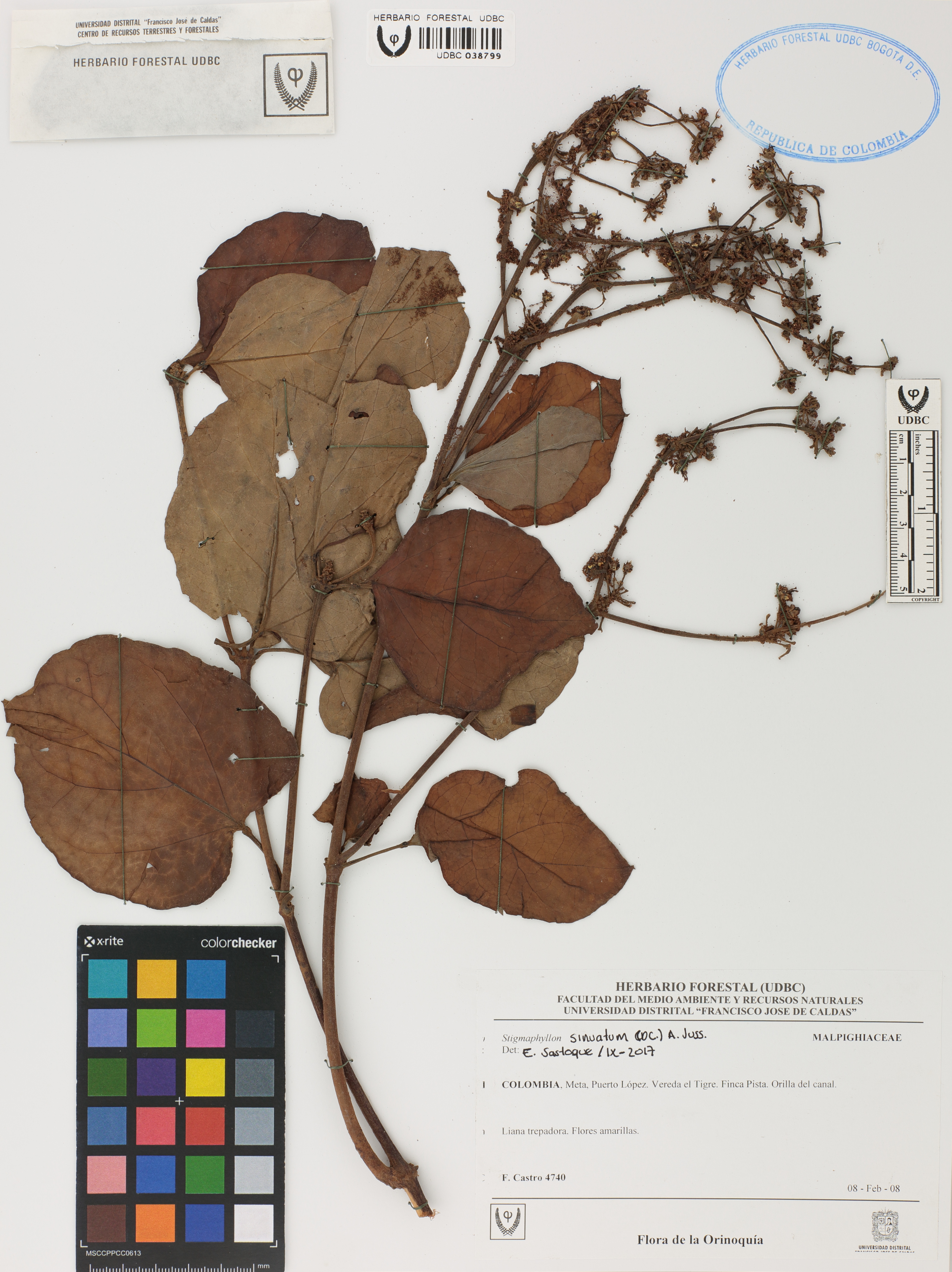 Fotografía del ejemplar Castro, F. 4740, determinado como Stigmaphyllon sinuatum en el año 2017