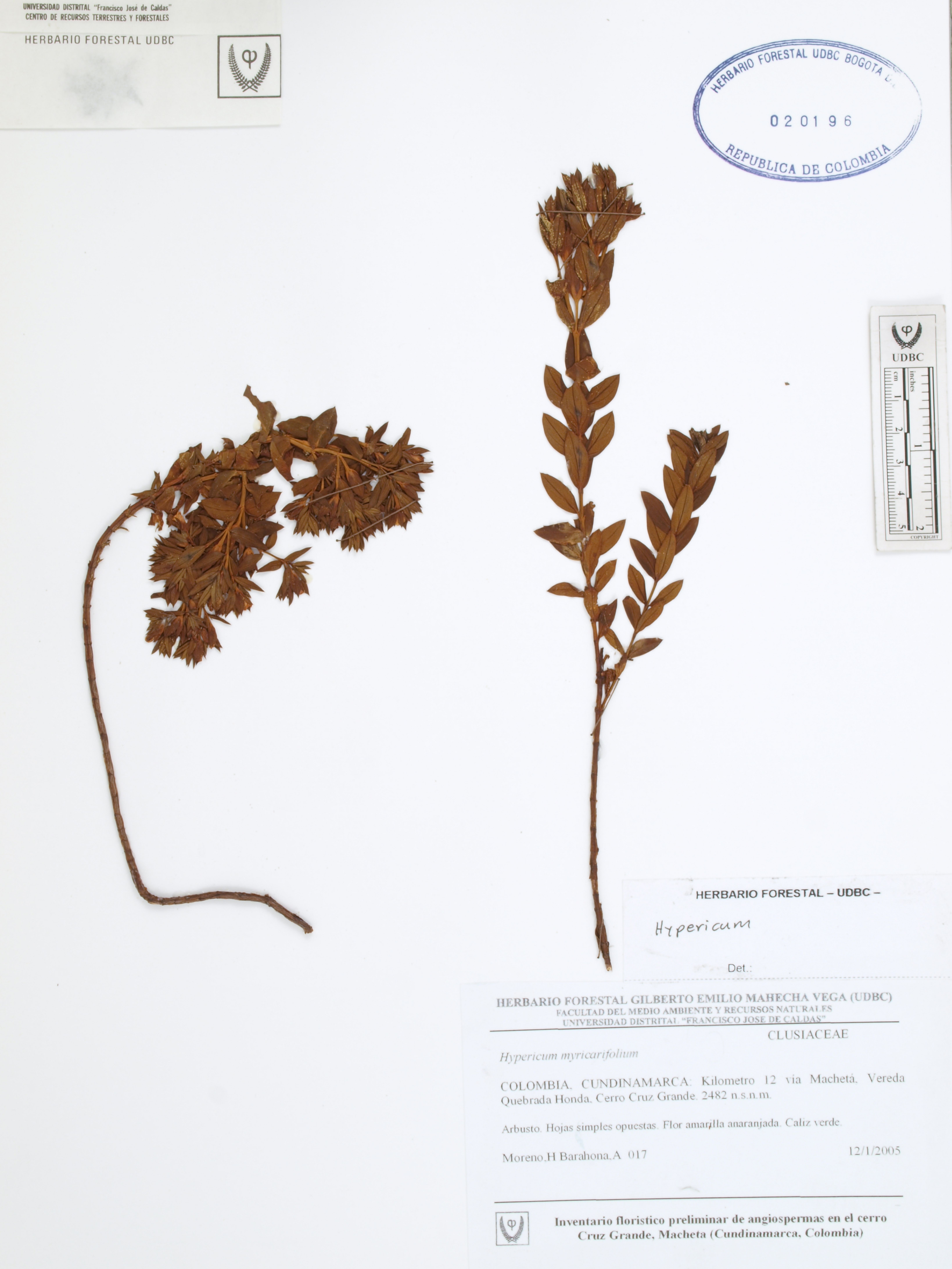 Fotografía del ejemplar Moreno, H. 17, determinado como Hypericum sp.
