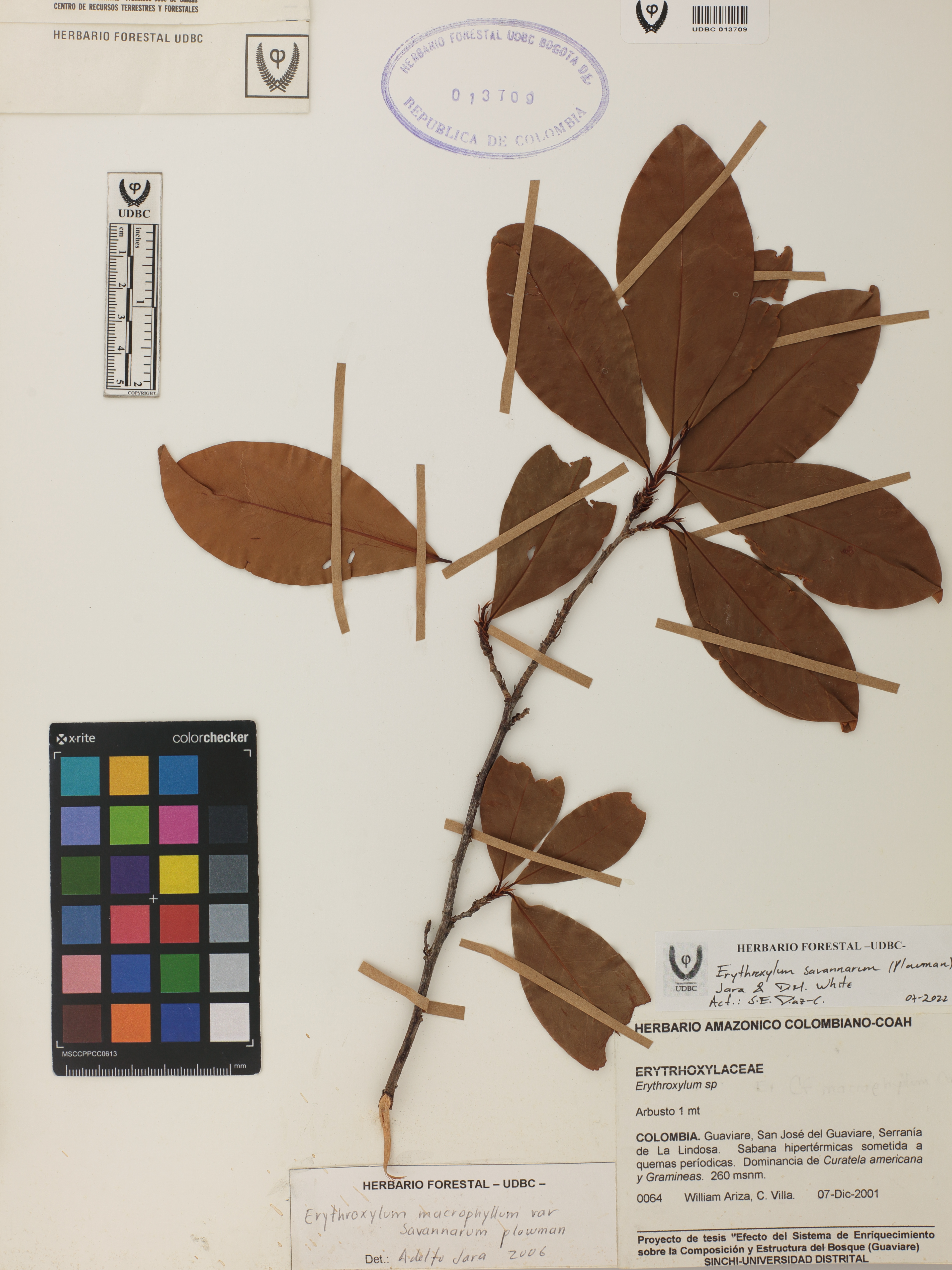 Fotografía del ejemplar Ariza, W. 64, determinado como Erythroxylum savannarum en el año 2006