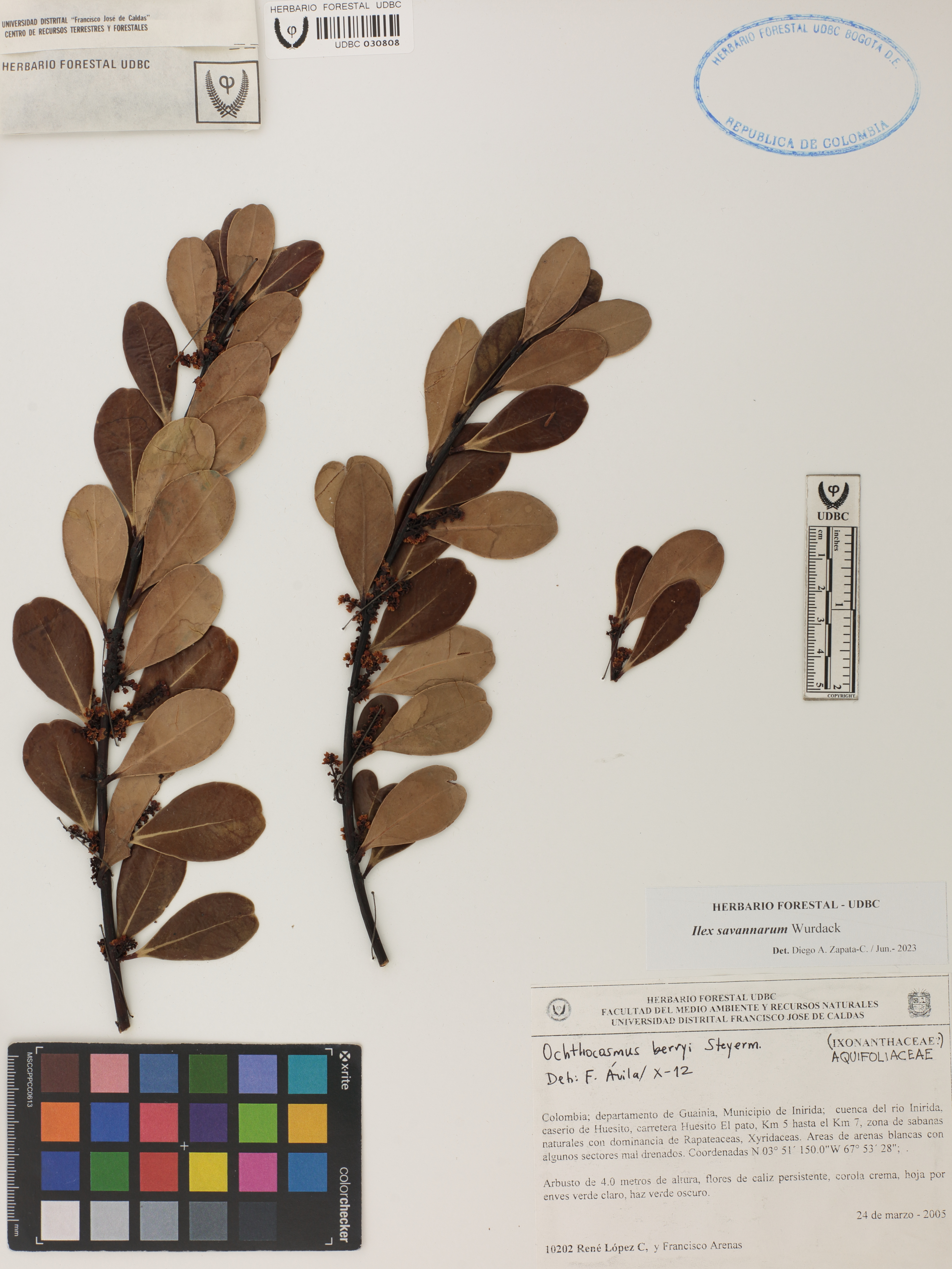 Fotografía del ejemplar López, R. 10202, determinado como Ilex savannarum en el año 2023