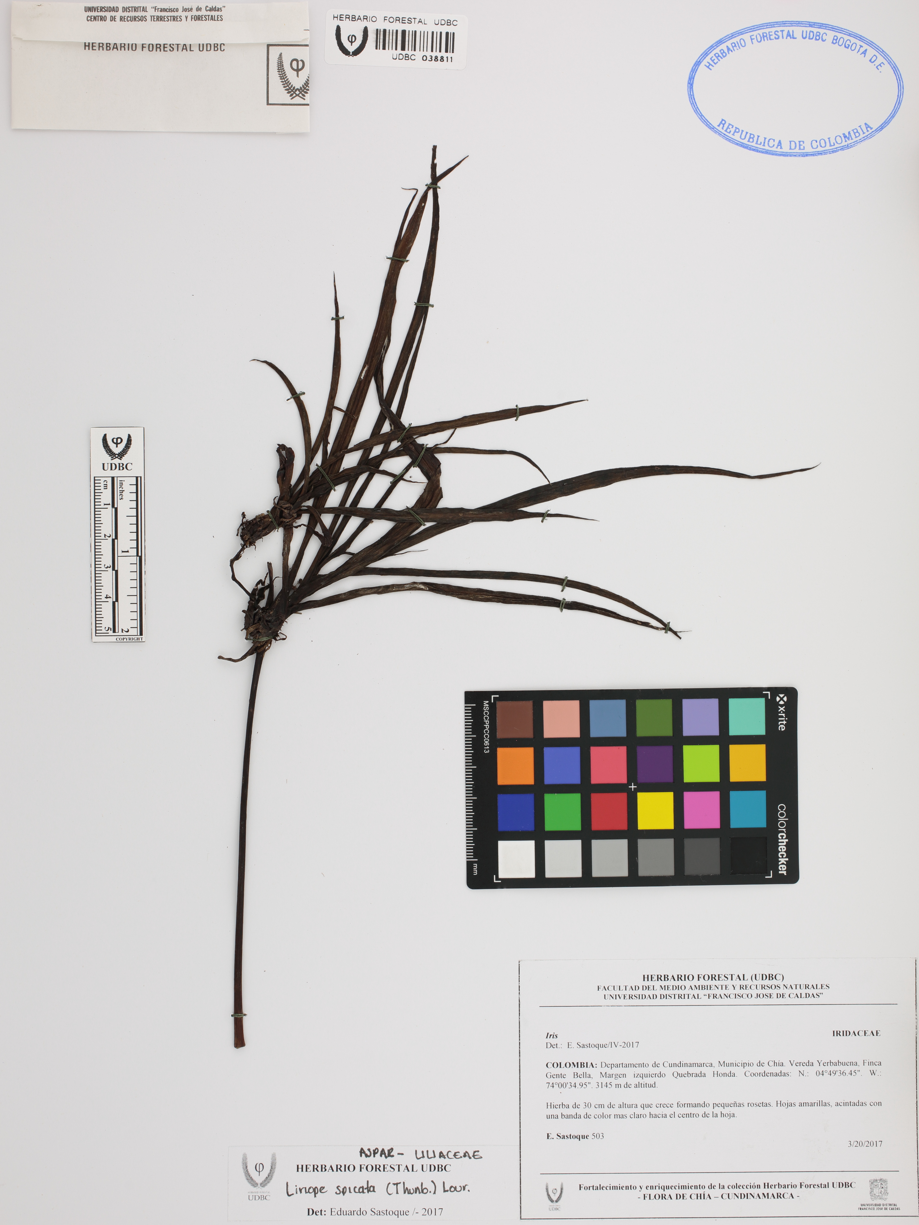 Fotografía del ejemplar Sastoque, E. 503, determinado como Liriope spicata en el año 2017