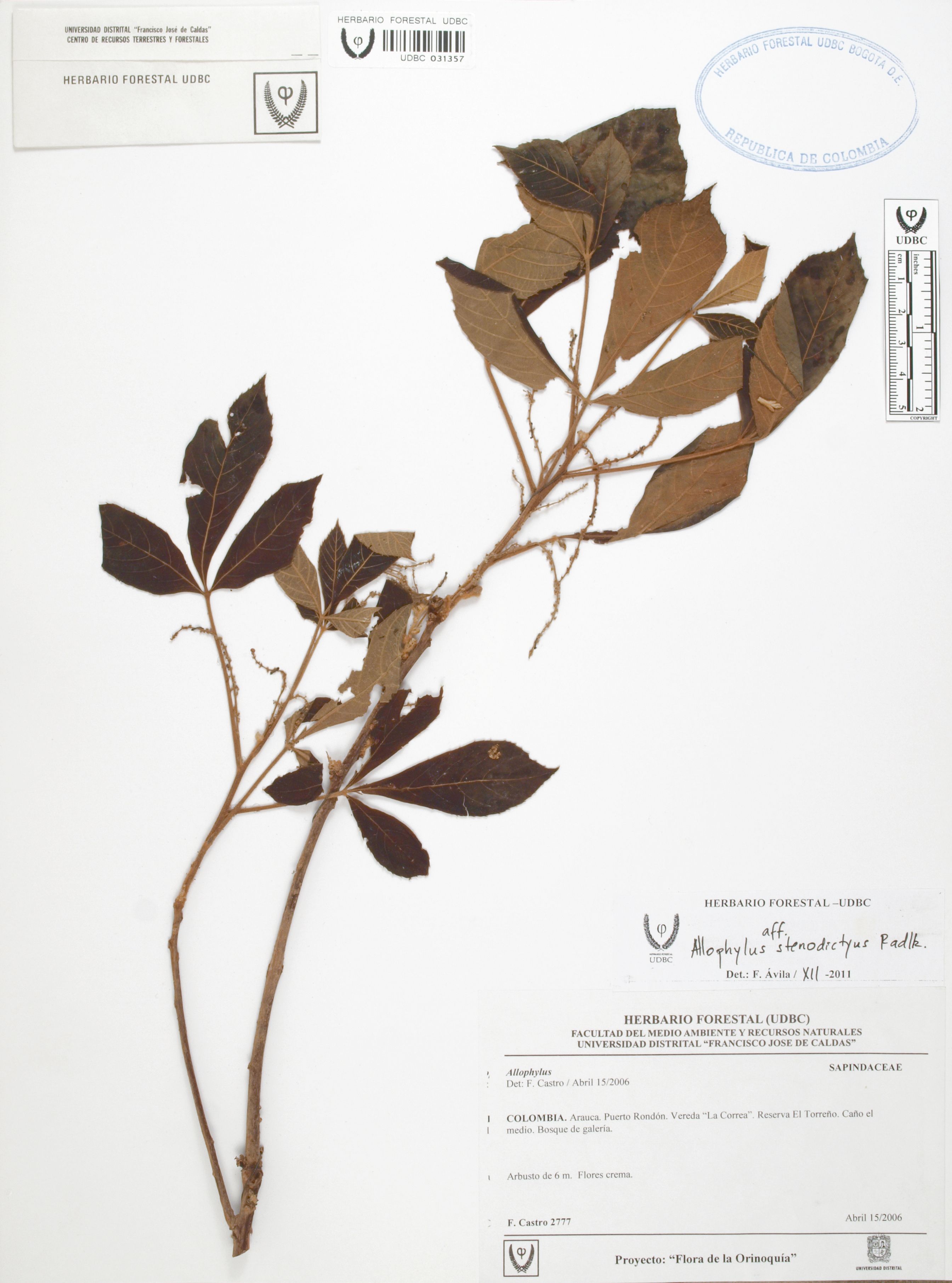 | dc.description | Fotografía del ejemplar Castro, F. 2777, determinado como Allophylus stenodictyus en el año 2011 | |