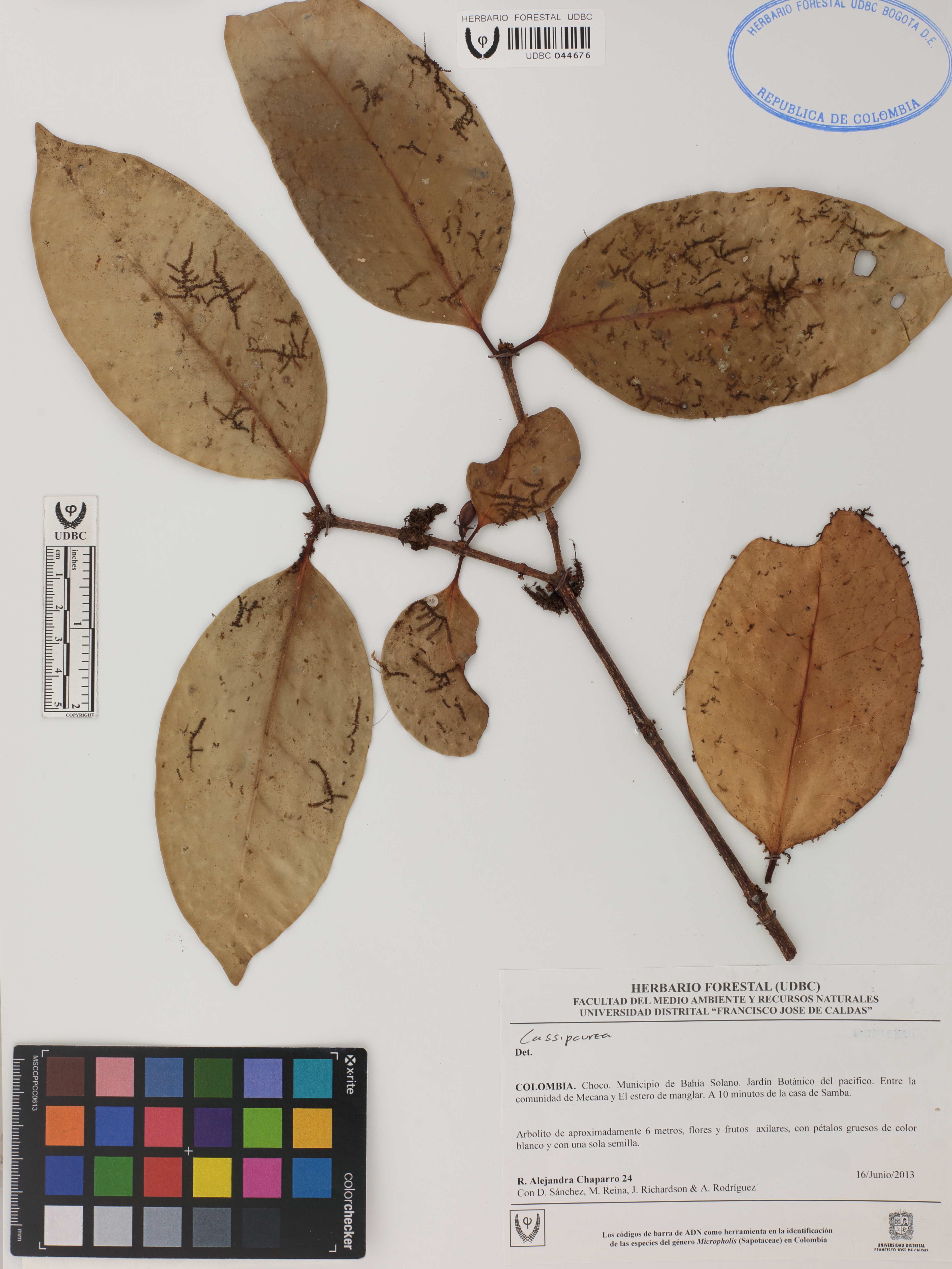 Fotografía del ejemplar Chaparro, R. 24, determinado como Cassipourea sp.