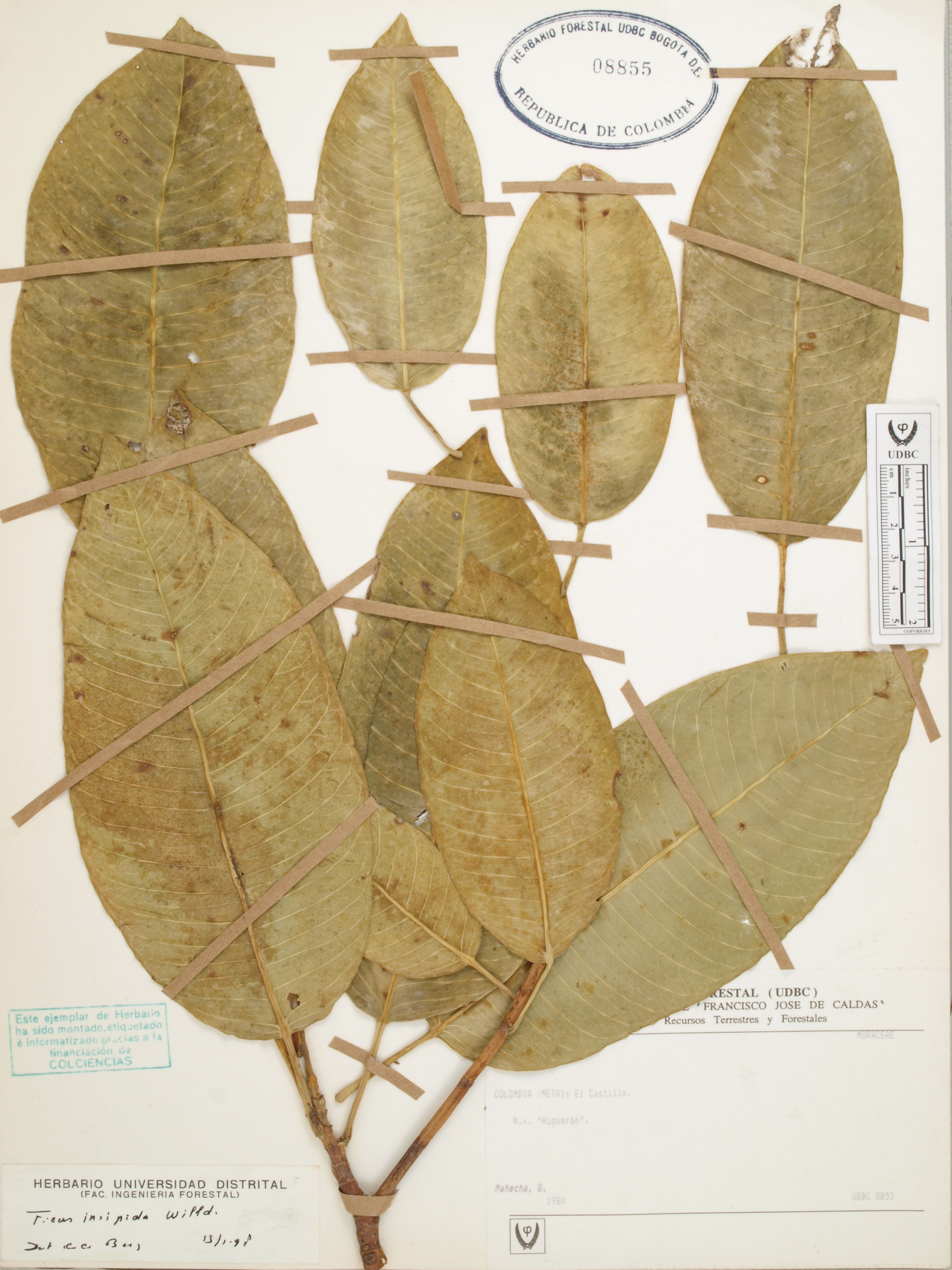 Fotografía del ejemplar Mahecha, G., determinado como Ficus insipida en el año 1997