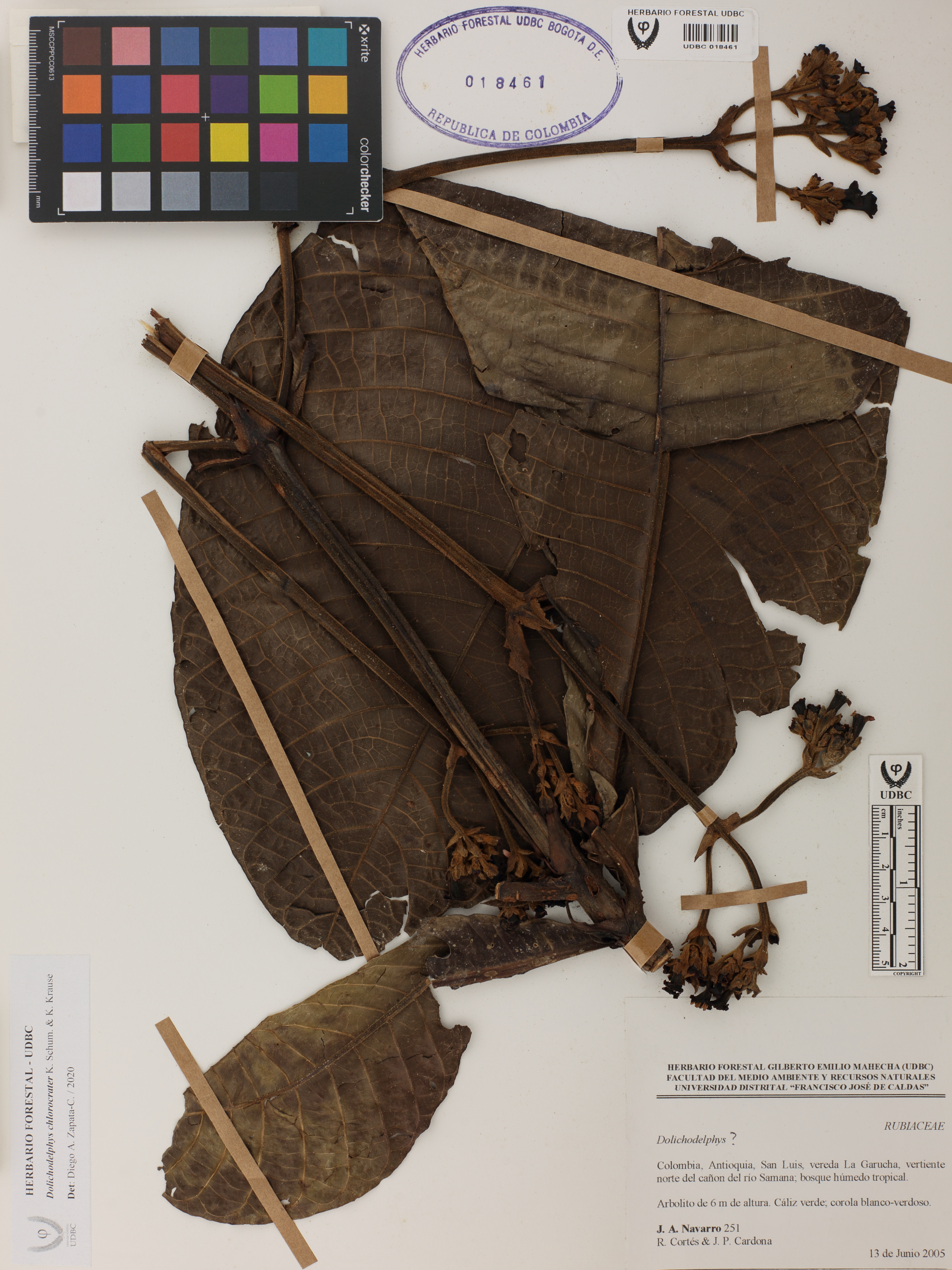 Fotografía del ejemplar Navarro, J. 251, determinado como Dolichodelphys chlorocrater en el año 2020