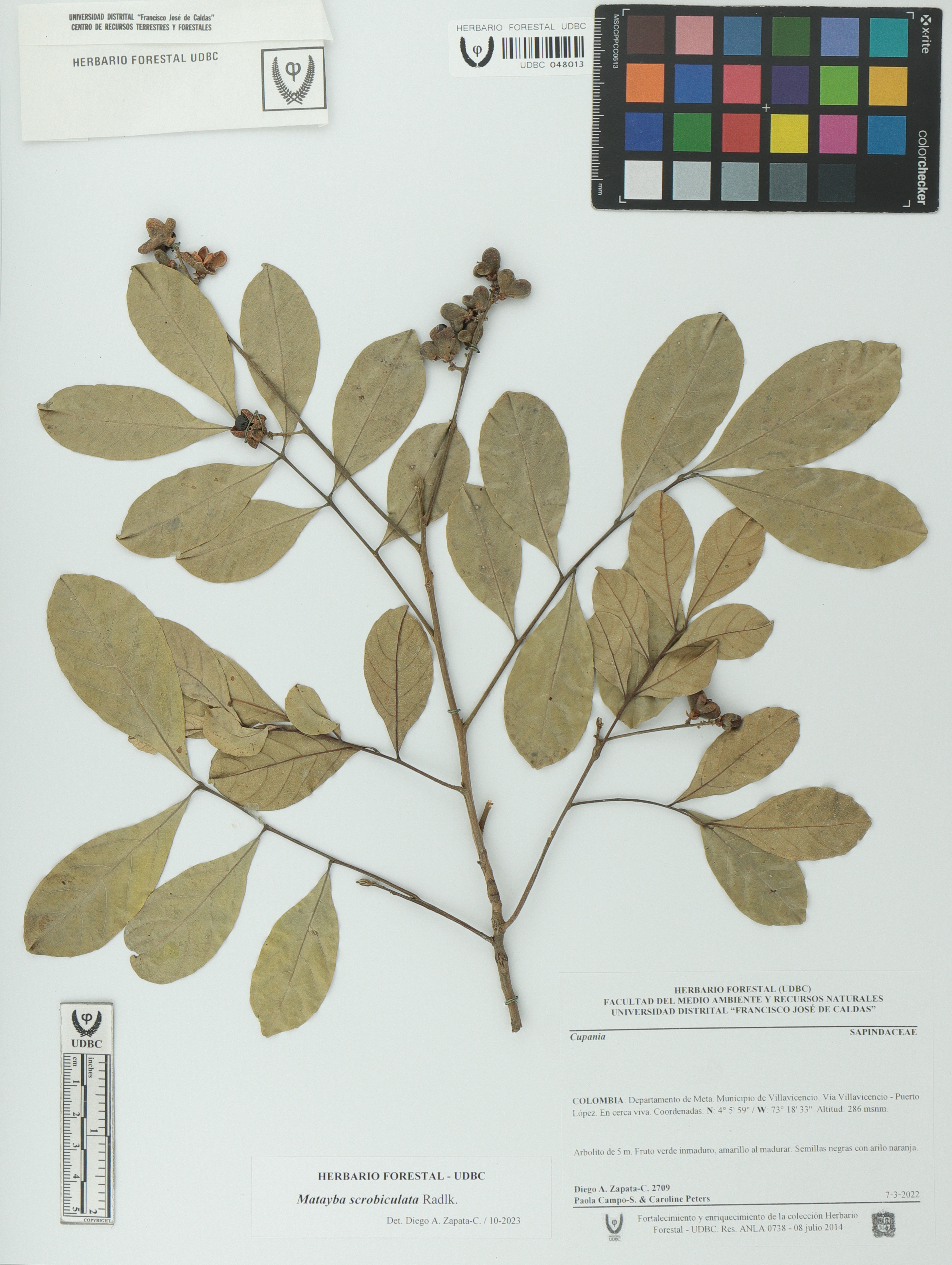 Fotografía del ejemplar Zapata-C., D. 2709, determinado como Cupania scrobiculata en el año 2023