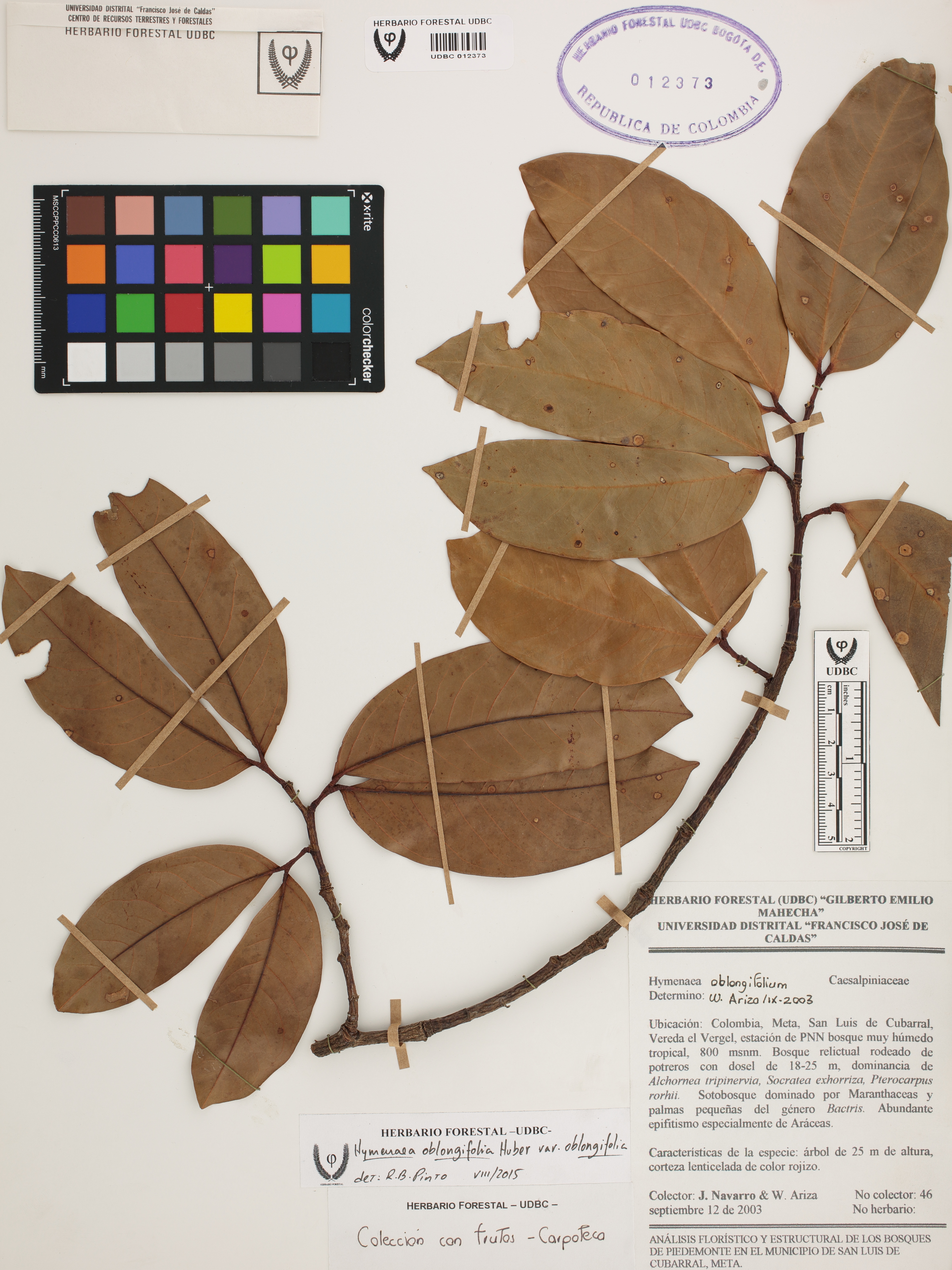 Fotografía del ejemplar Navarro, J. 46, determinado como Hymenaea oblongifolia var. oblongifolia en el año 2015