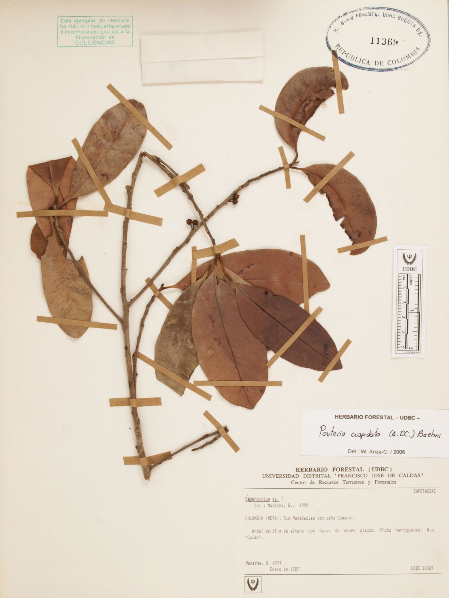 Fotografía del ejemplar Mahecha, G. 4394, determinado como Pouteria cuspidata en el año 2006