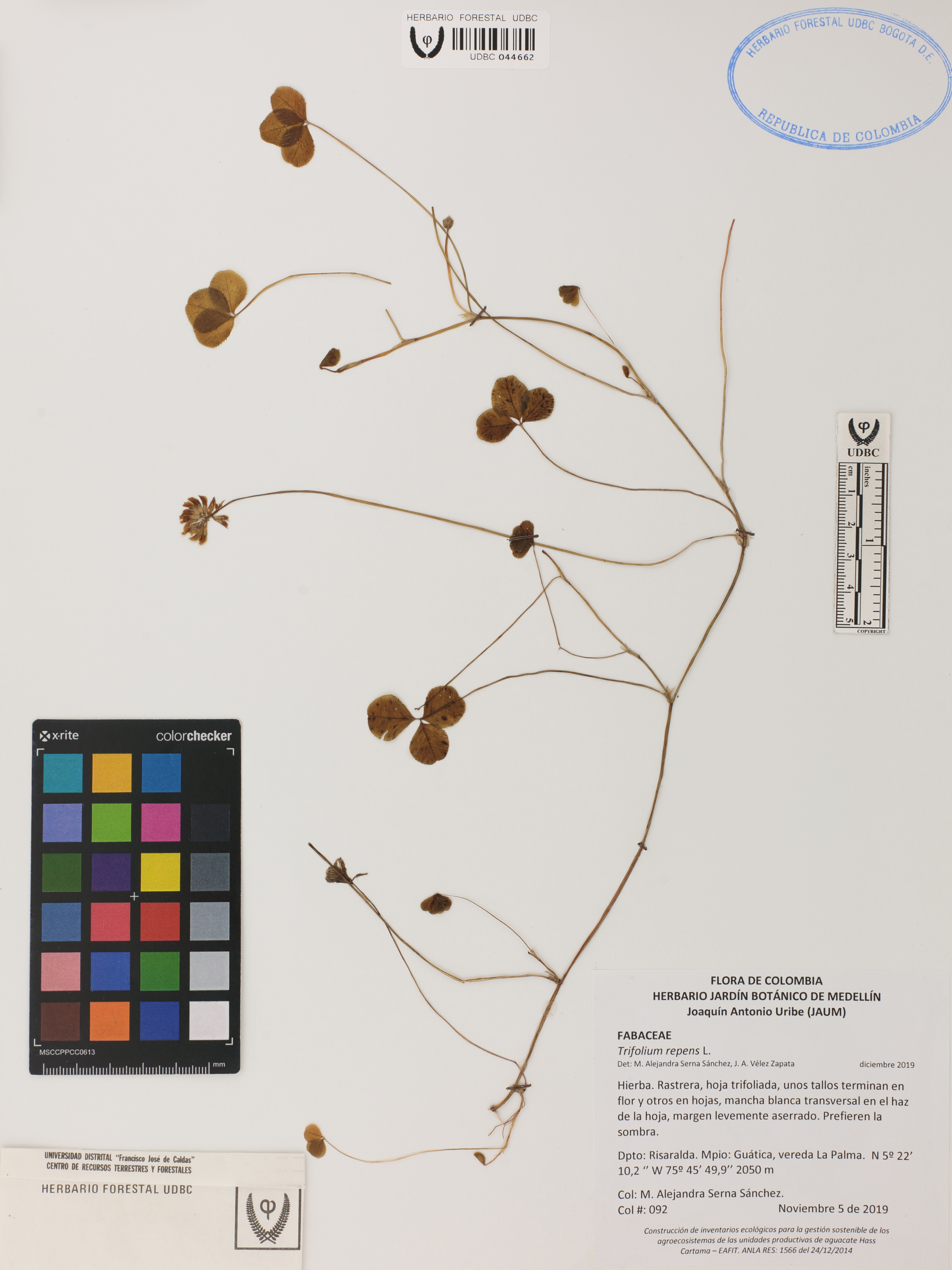 Fotografía del ejemplar Serna-Sánchez, M. 92, determinado como Trifolium repens en el año 2019