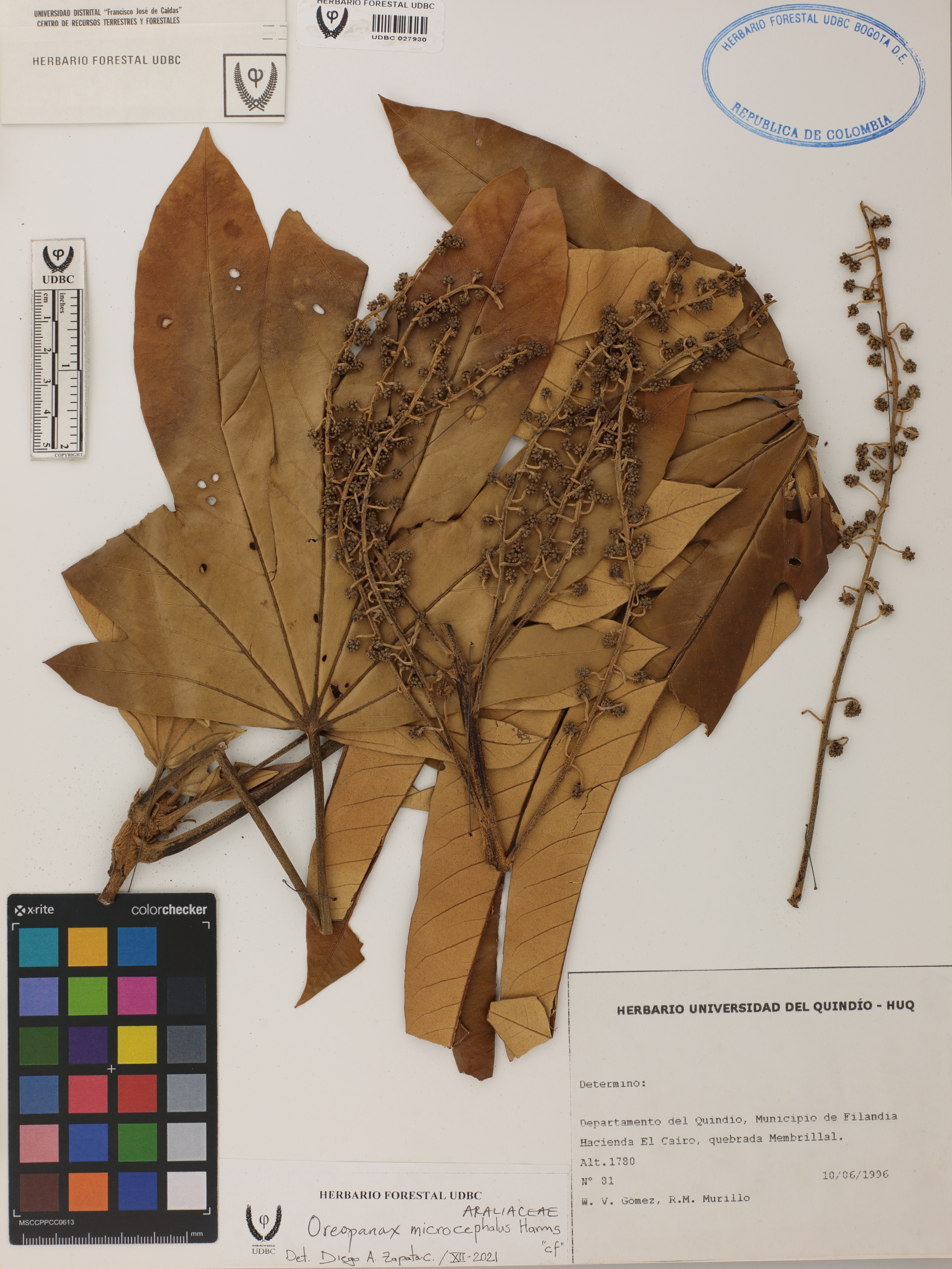 | dc.description | Fotografía del ejemplar Gómez, W. 81, determinado como Oreopanax microcephalus en el año 2021 | |