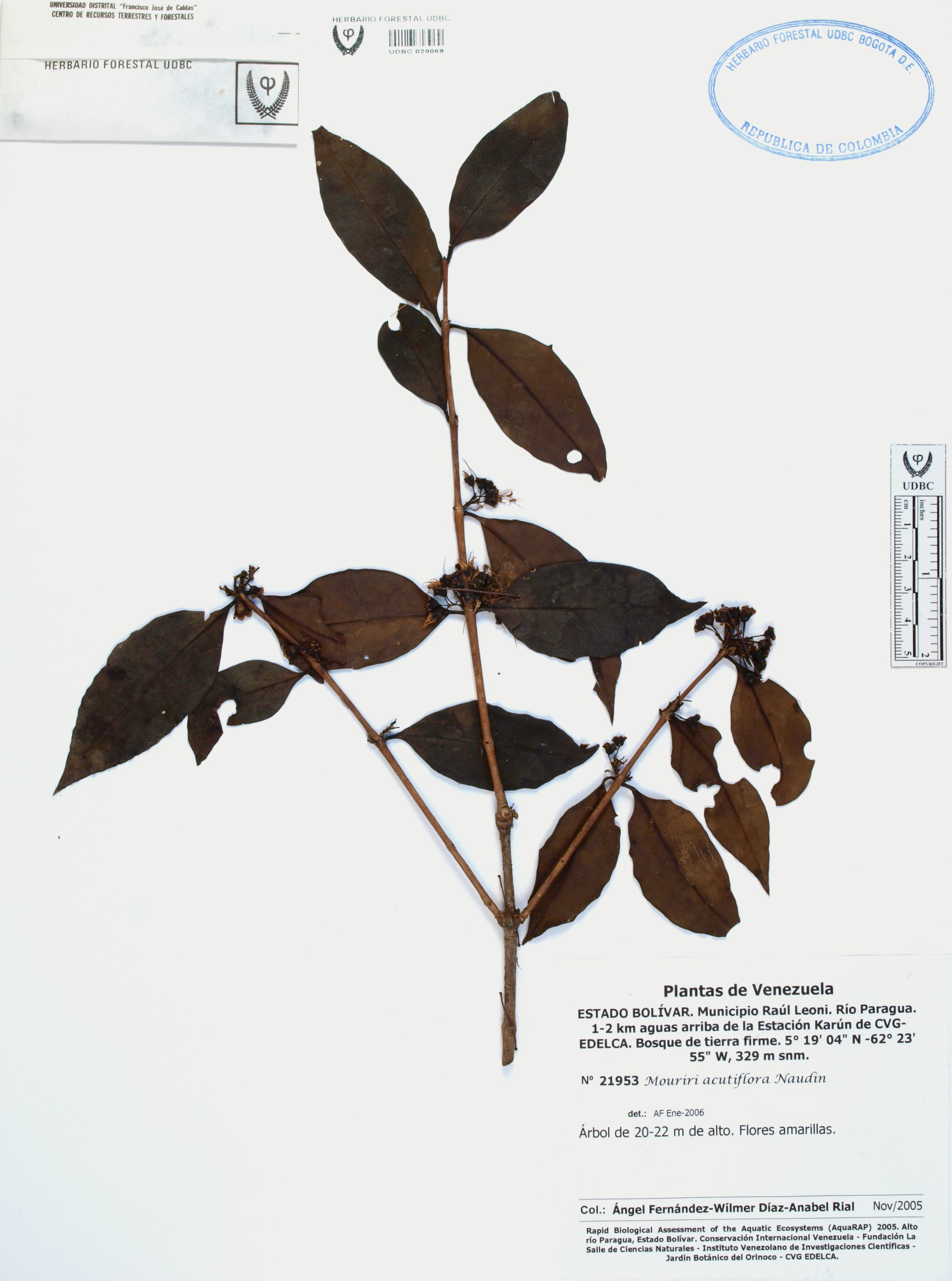 | dc.description | Fotografía del ejemplar Fernández, A. 21953, determinado como Mouriri acutiflora en el año 2006 | |