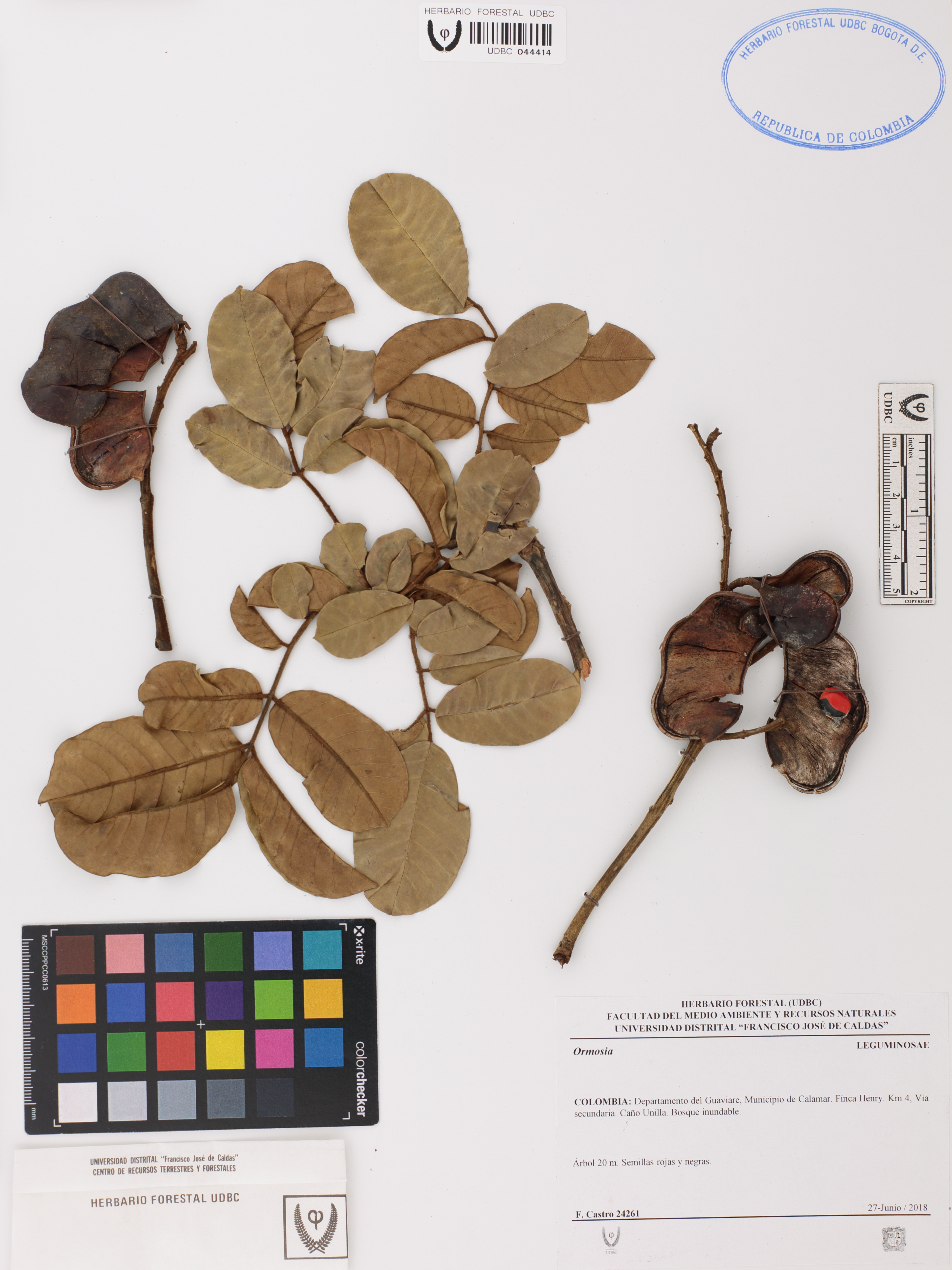 Fotografía del ejemplar Castro, F. 24261, determinado como Ormosia sp.