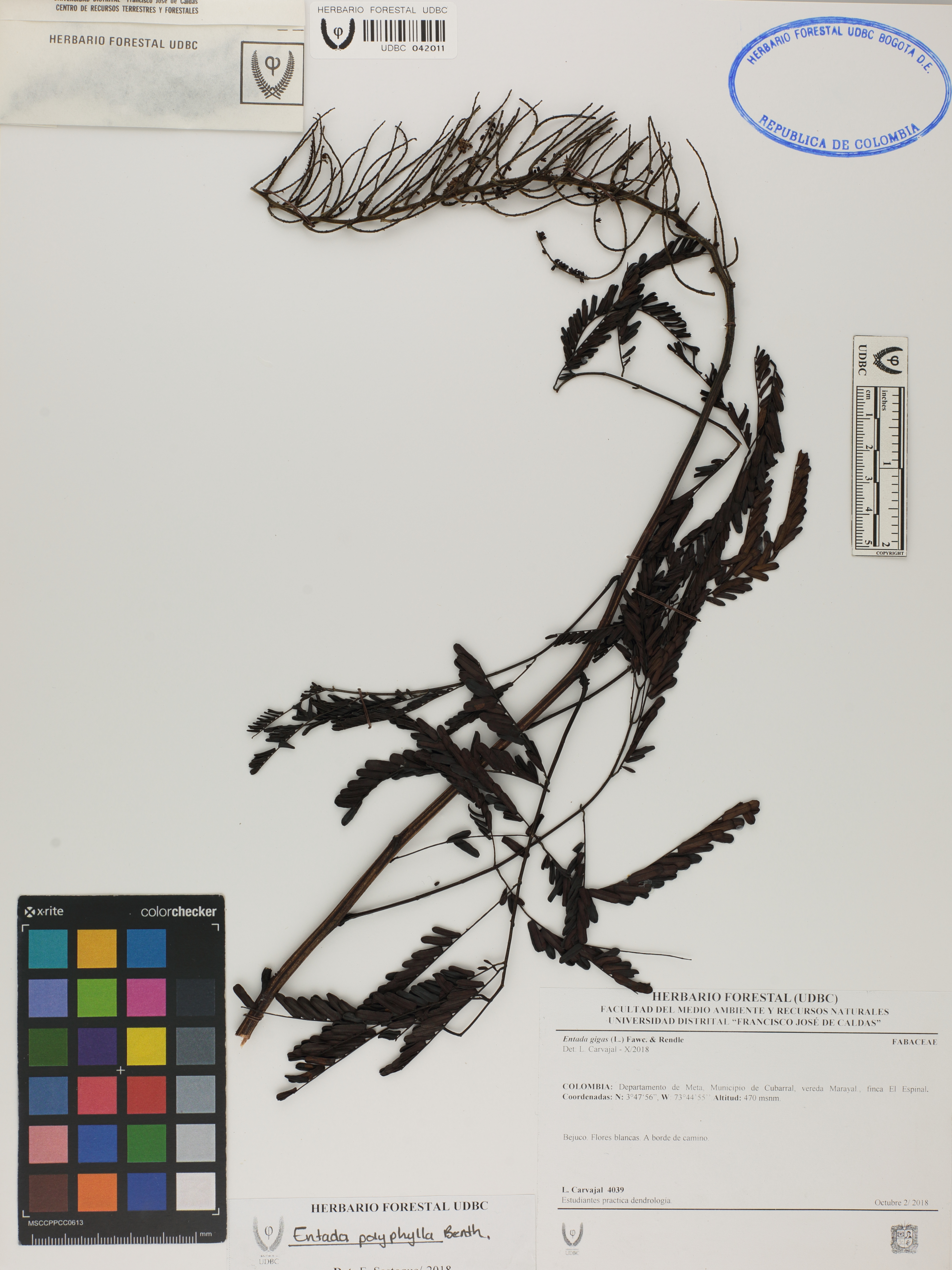 | dc.description | Fotografía del ejemplar Carvajal, L. 4039, determinado como Entada polyphylla en el año 2018 | |