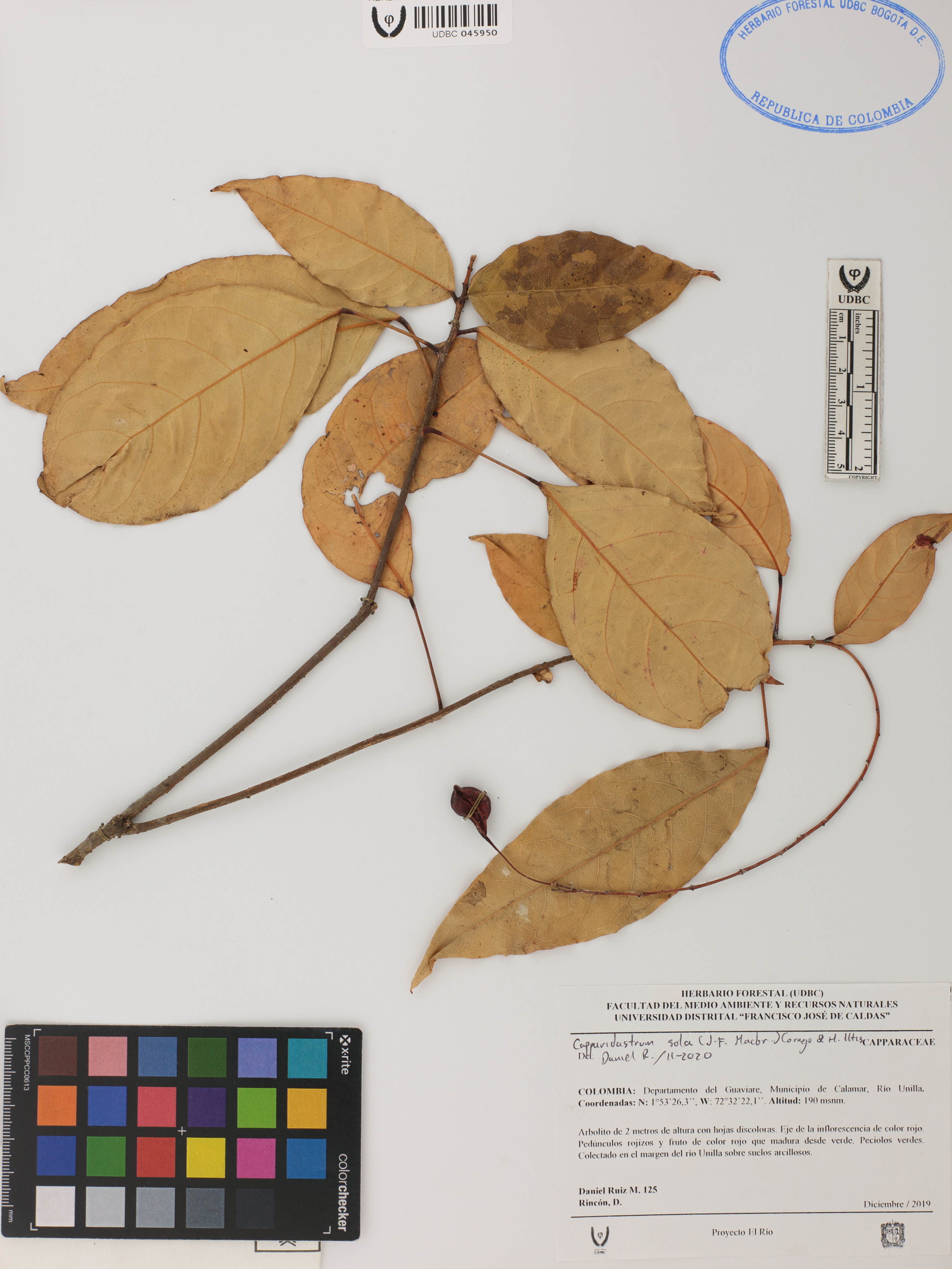 Fotografía del ejemplar Ruiz, D. 125, determinado como Capparidastrum sola en el año 2020