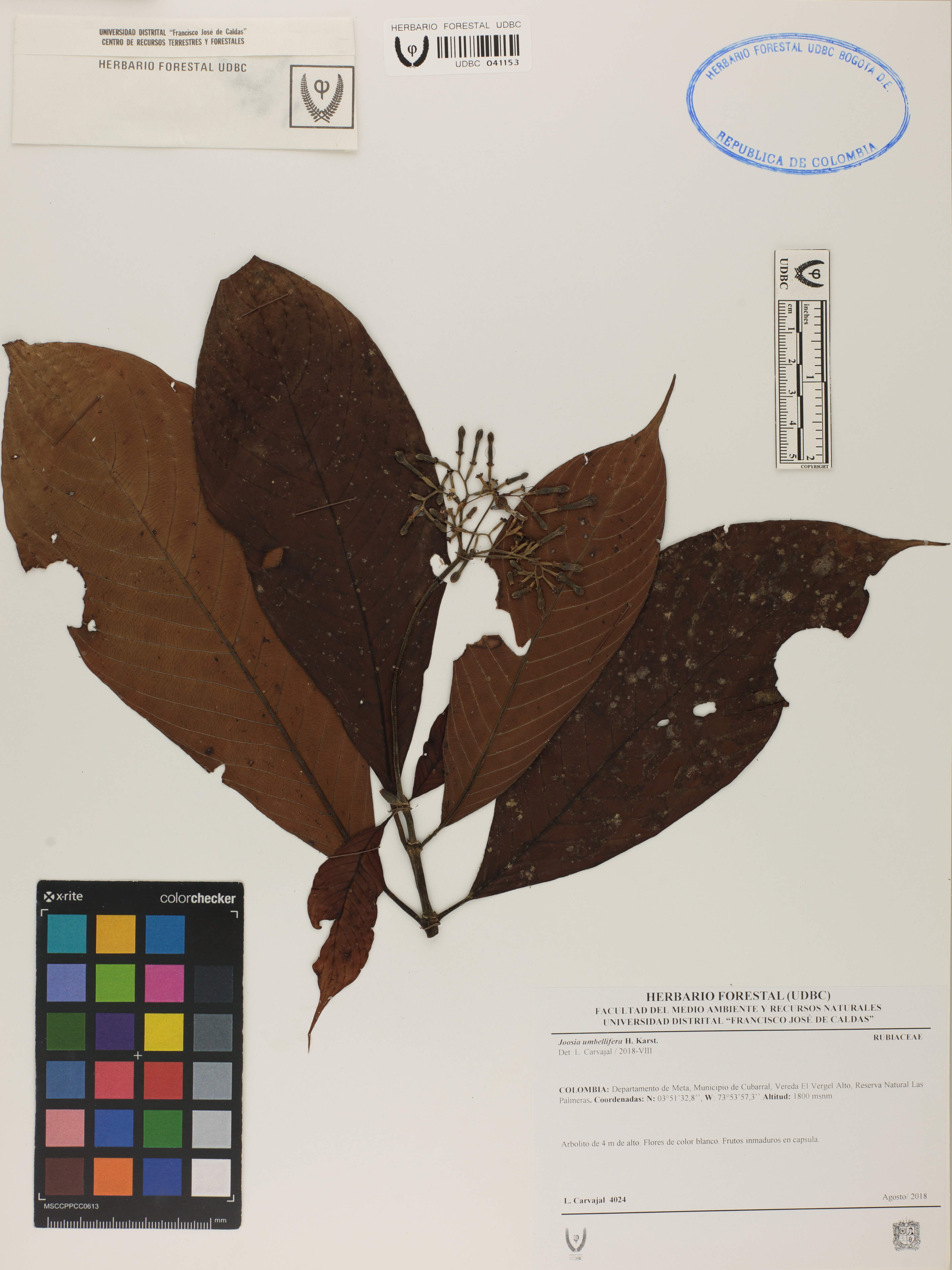 Fotografía del ejemplar Carvajal, L. 4024, determinado como Joosia umbellifera en el año 2018