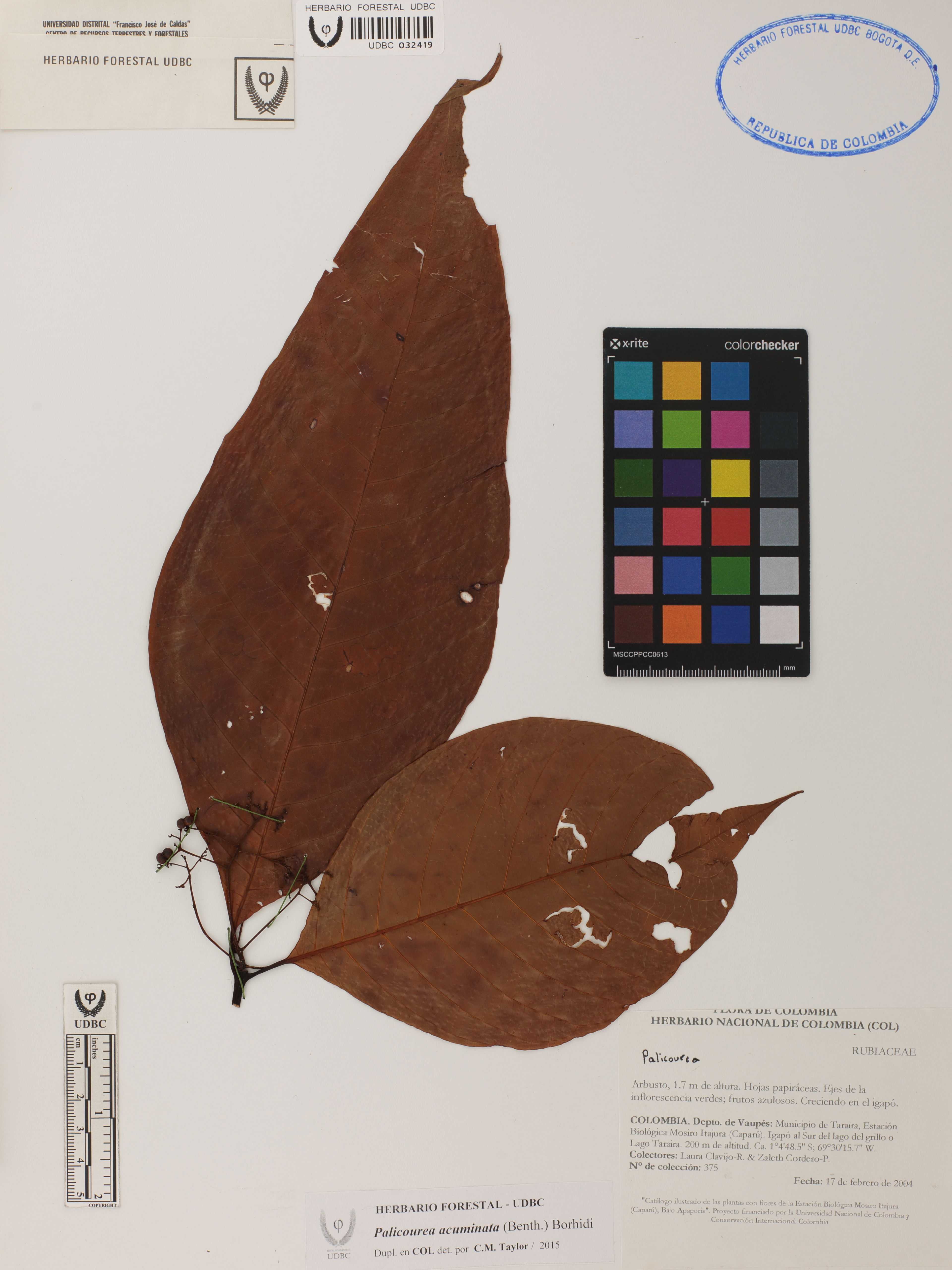 Fotografía del ejemplar Clavijo-R., L. 375, determinado como Palicourea acuminata en el año 2015
