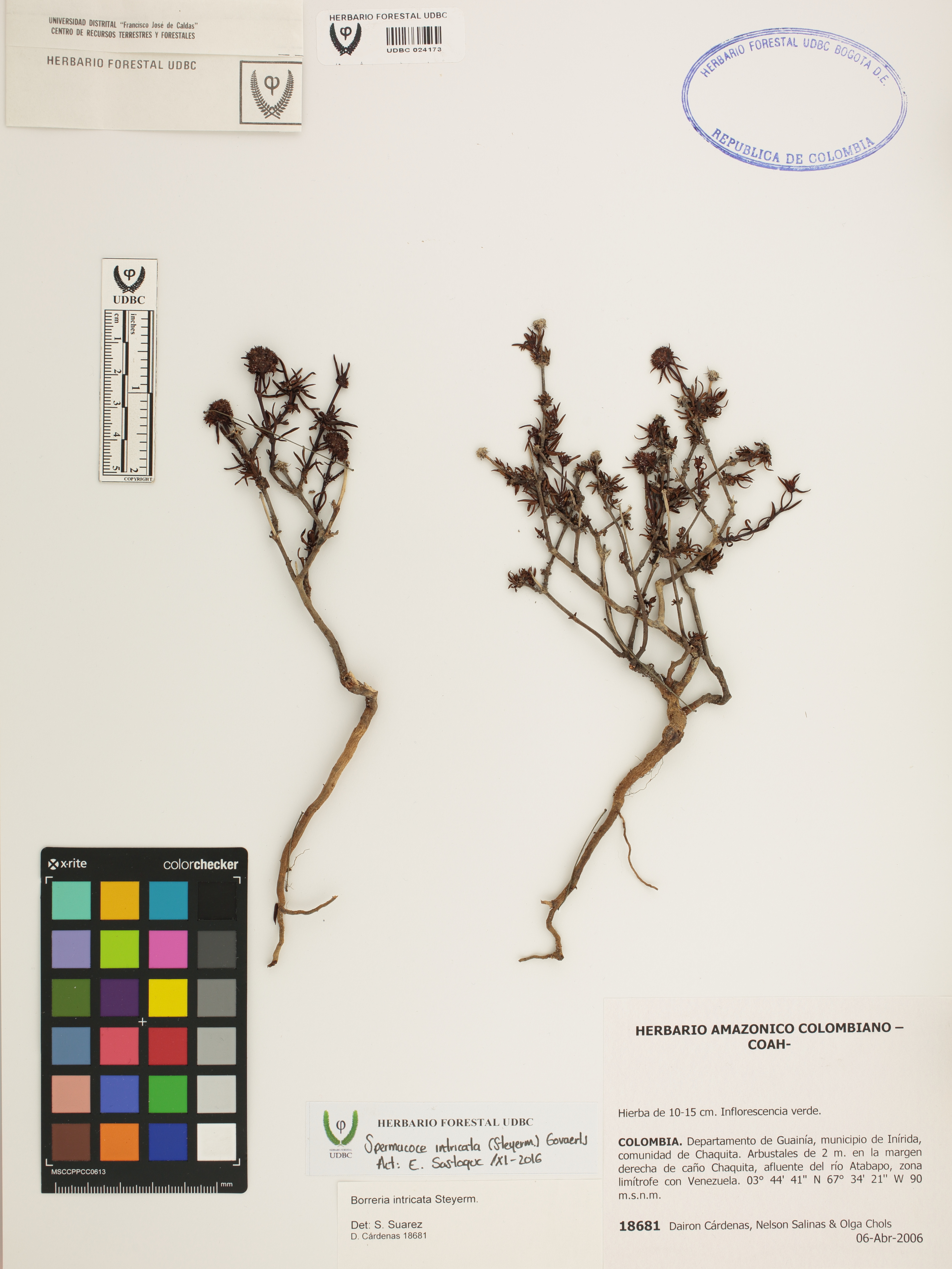 Fotografía del ejemplar Cárdenas, D. 18681, determinado como Spermacoce intricata
