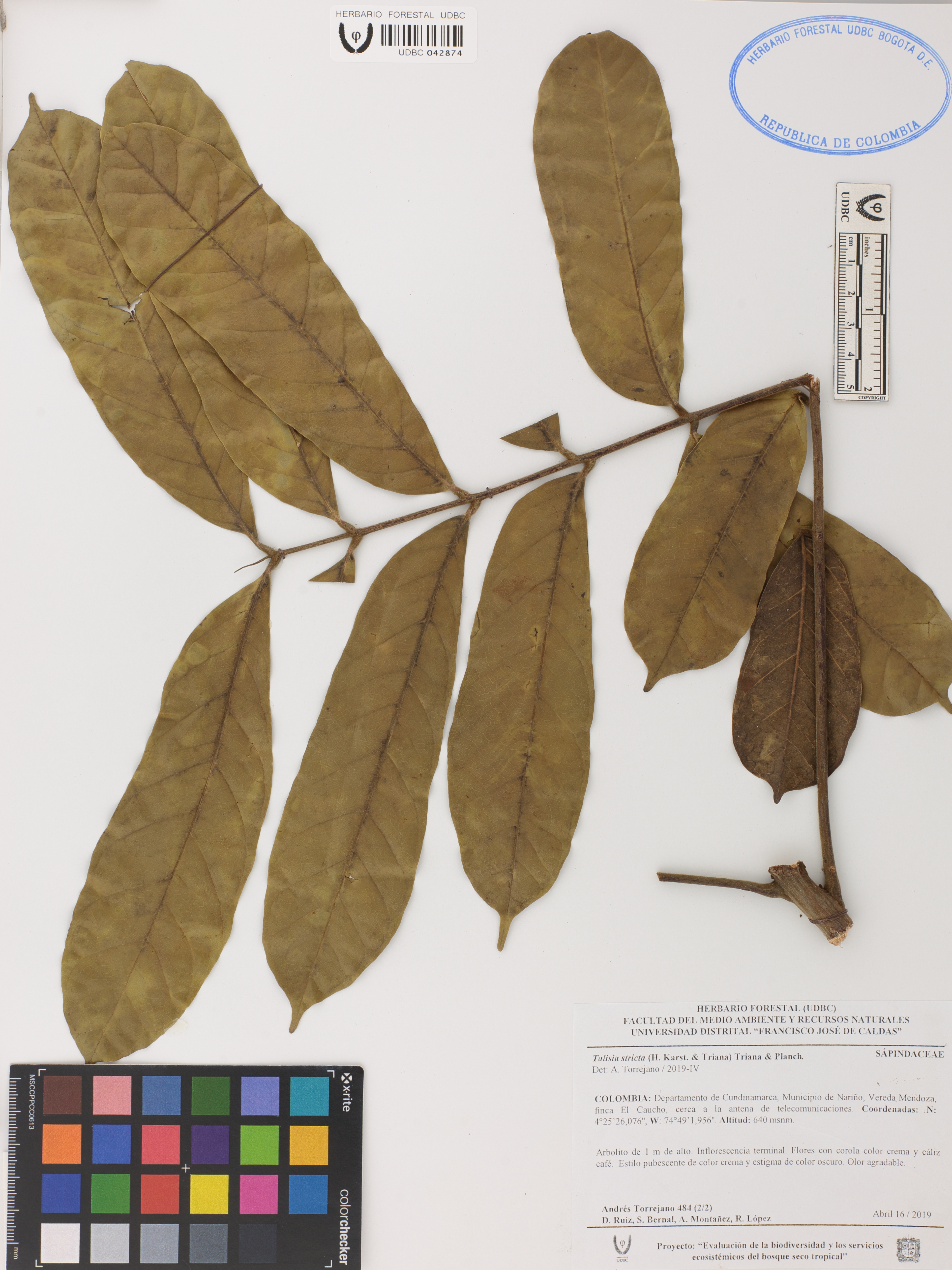 Fotografía del ejemplar Torrejano, A. 484, determinado como Talisia stricta en el año 2019