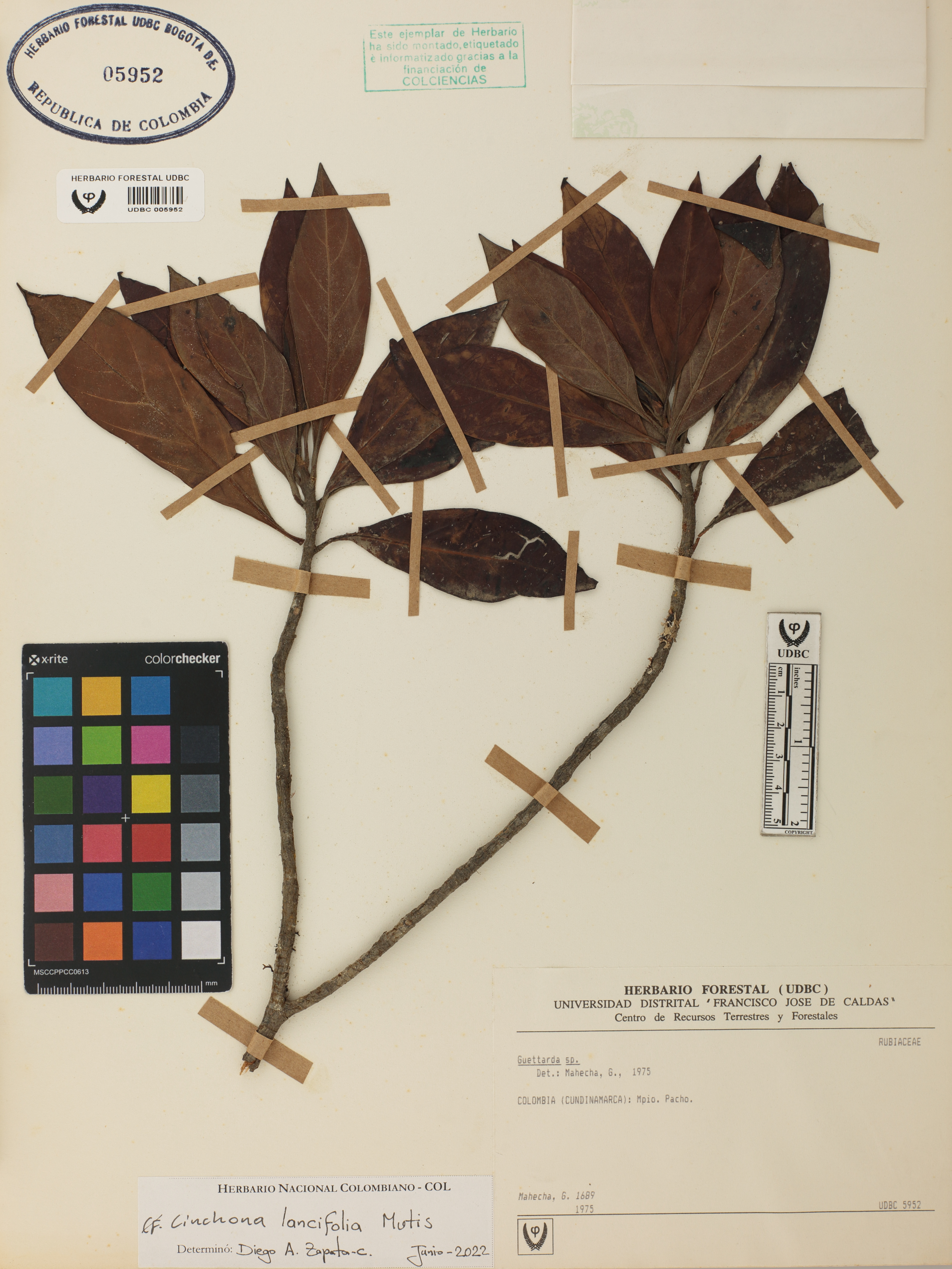 Fotografía del ejemplar Mahecha, G. 1689, determinado como Cinchona lancifolia en el año 2022