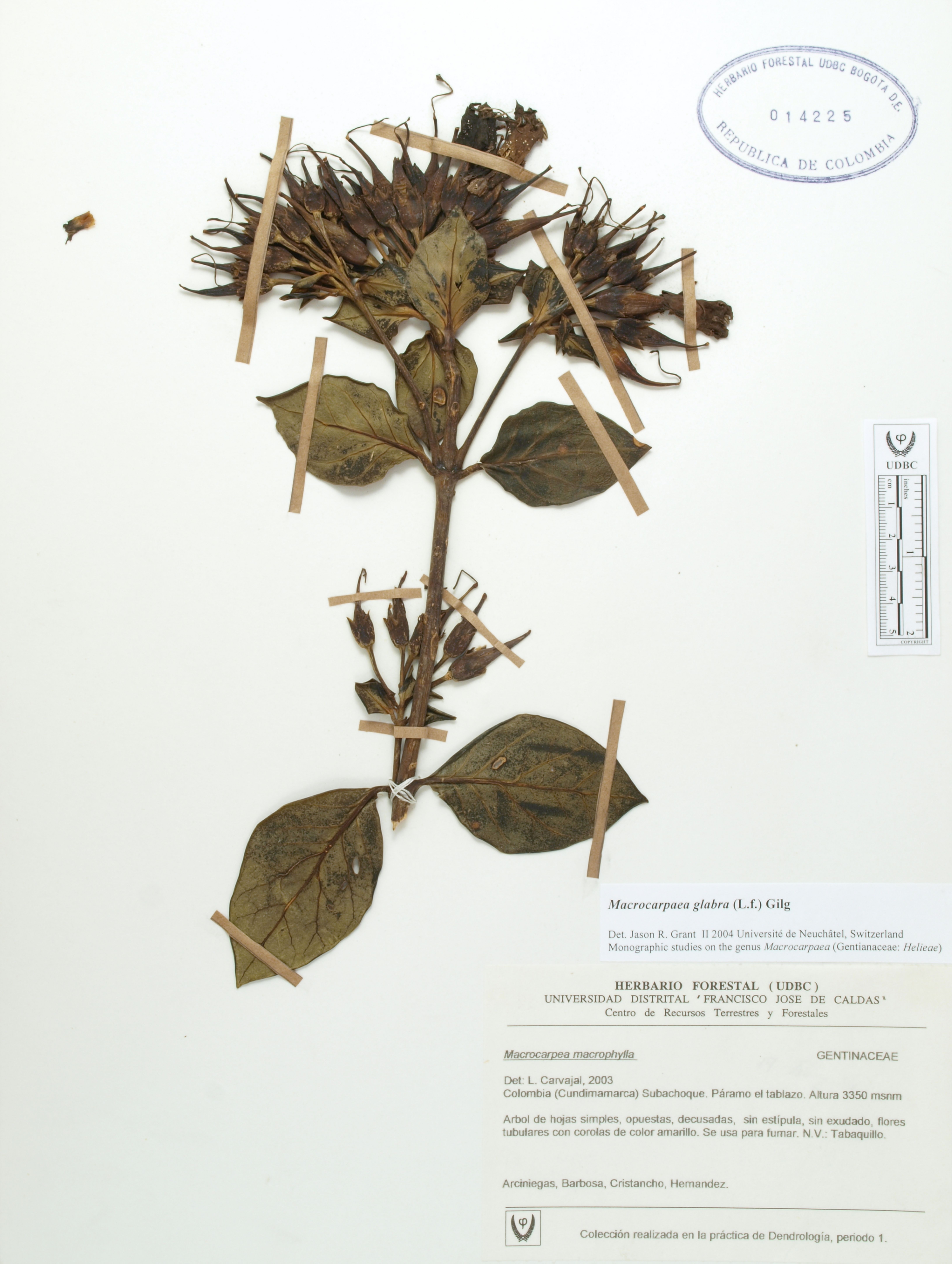 Fotografía del ejemplar Arciniegas, S., determinado como Macrocarpaea glabra en el año 2004
