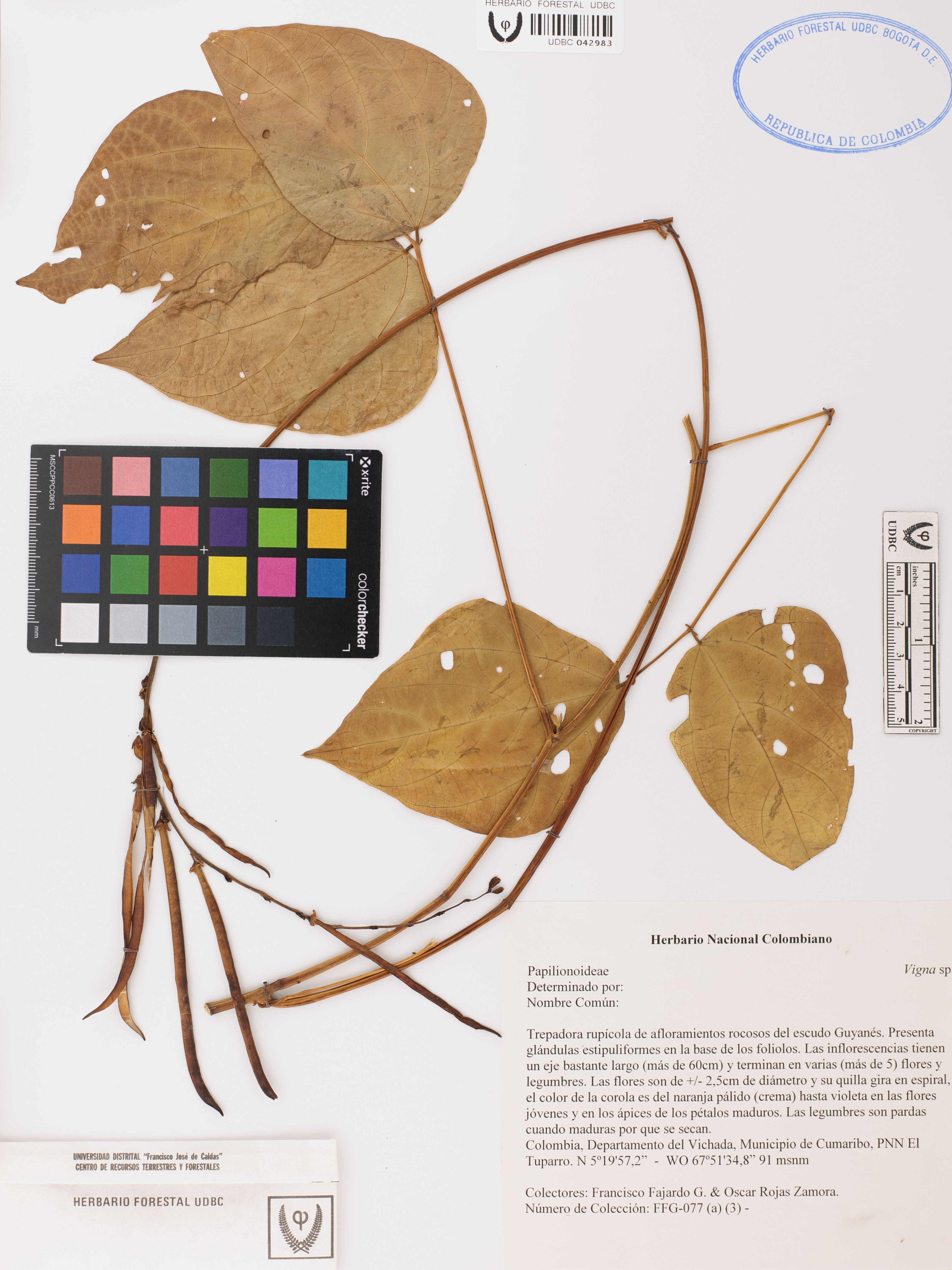 Fotografía del ejemplar Fajardo-G., F. 77, determinado como Vigna sp.