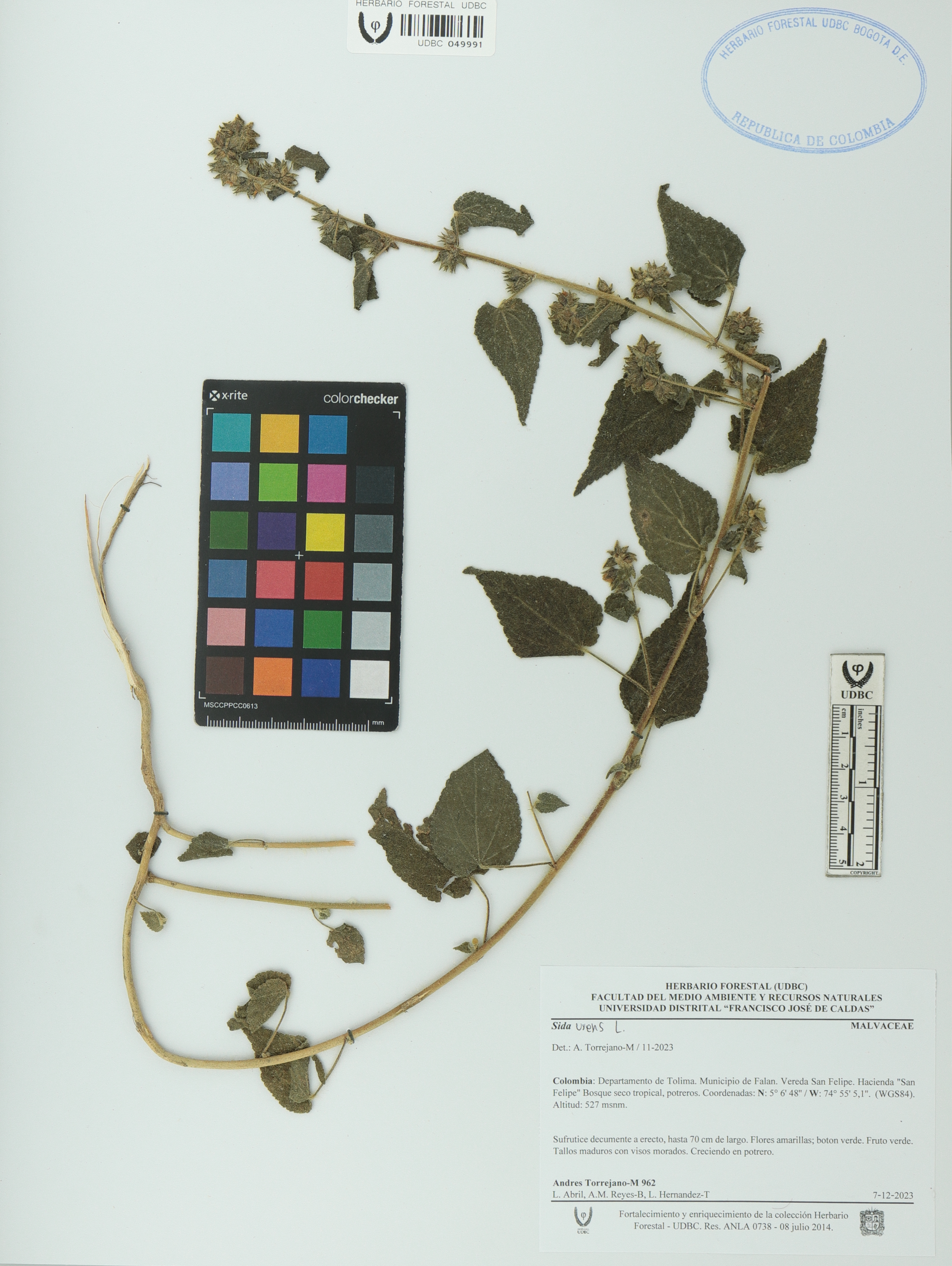 Fotografía del ejemplar Torrejano-M., A. 962, determinado como Sida urens en el año 2023