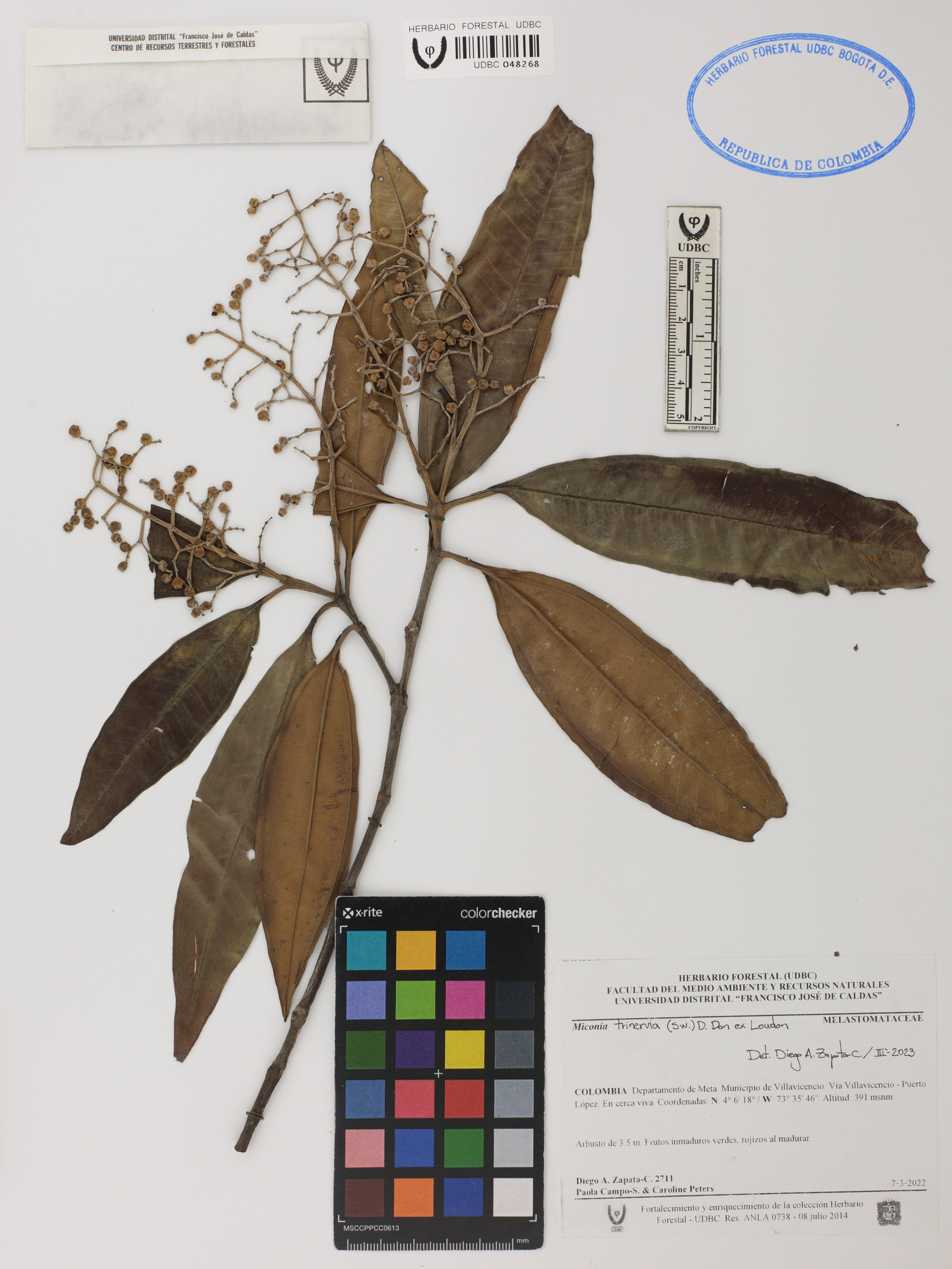 Fotografía del ejemplar Zapata-C., D. 2711, determinado como Miconia trinervia en el año 2023