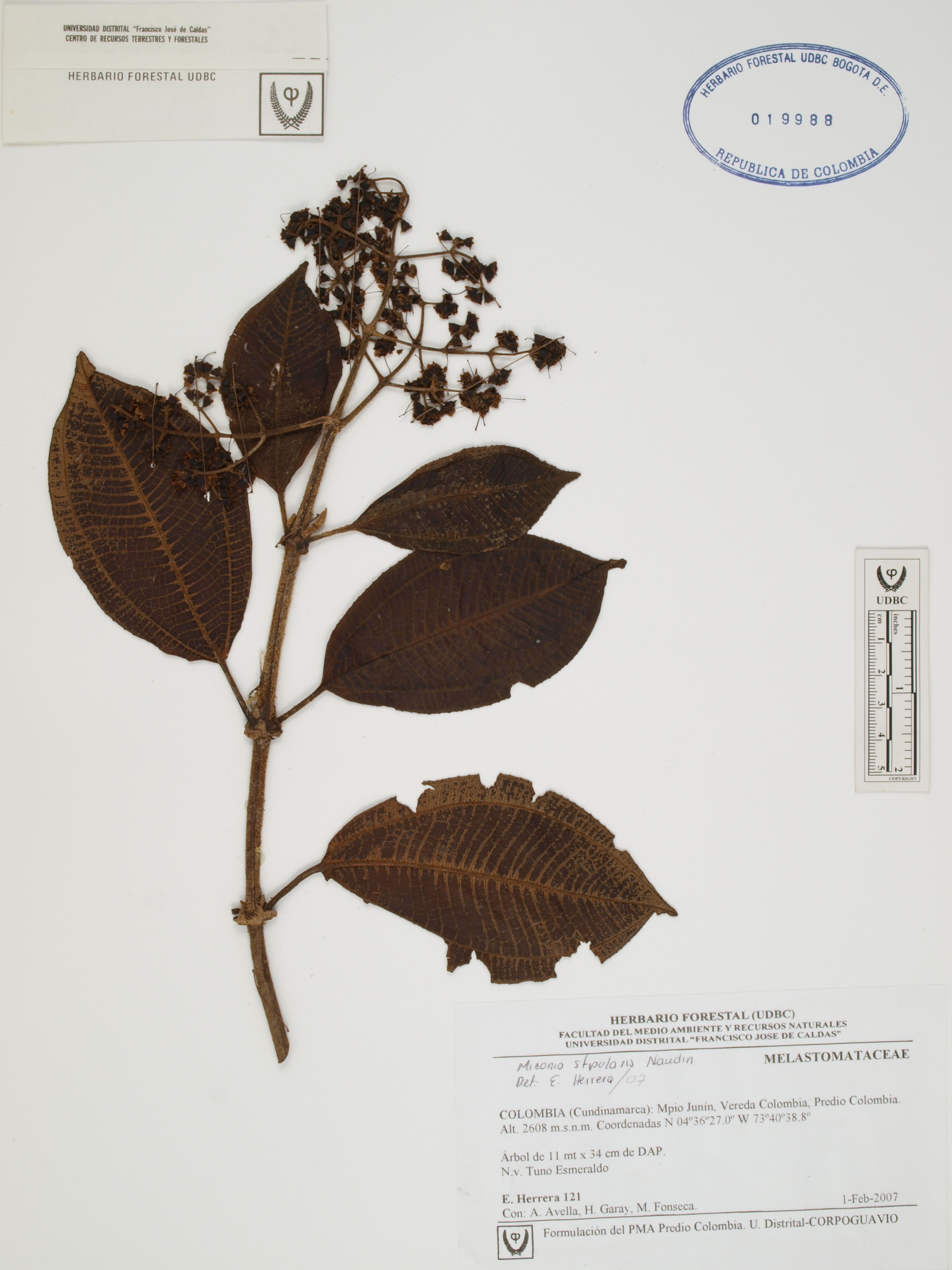 Fotografía del ejemplar Herrera, E. 121, determinado como Miconia stipularis en el año 2007