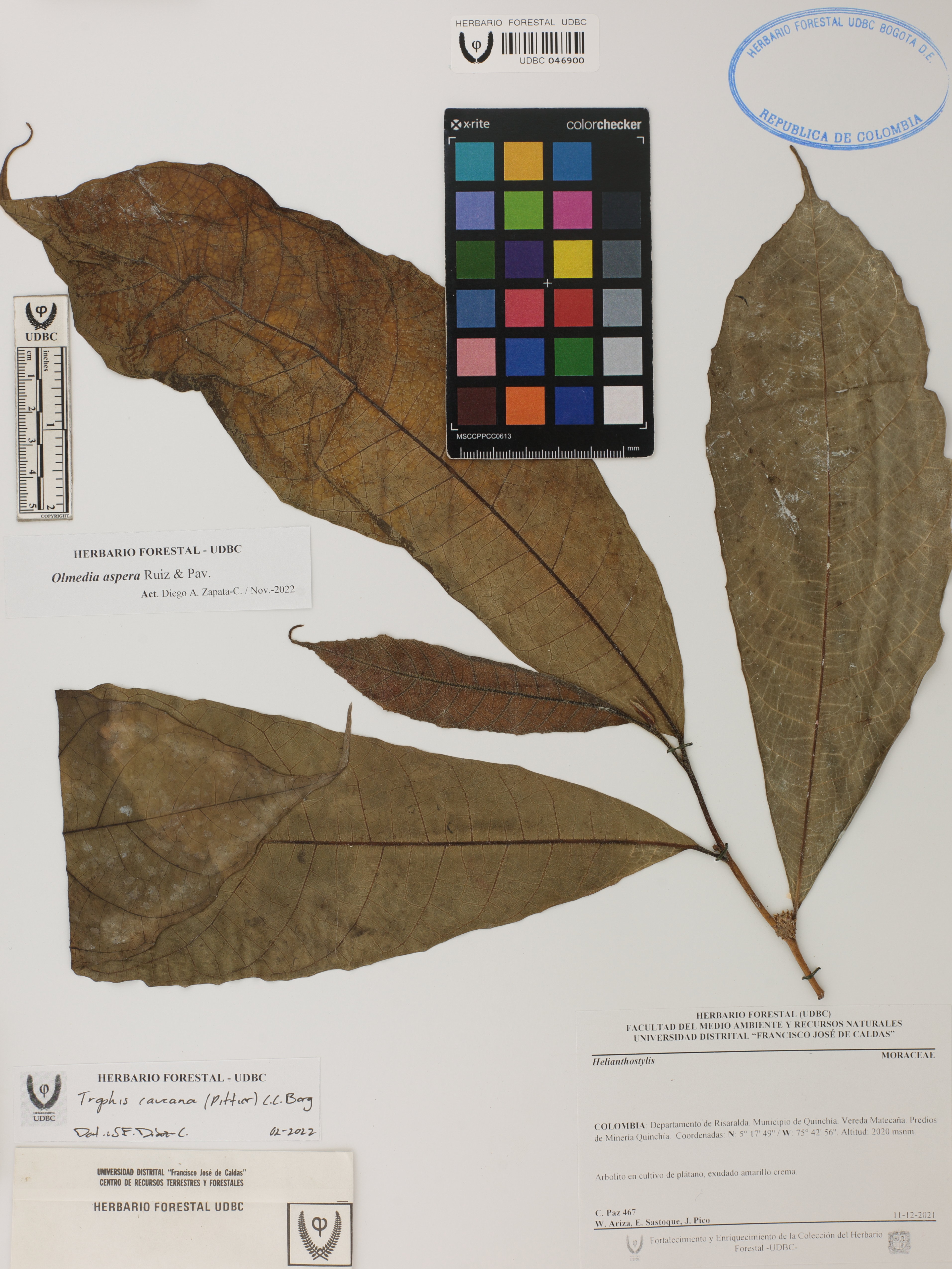 Fotografía del ejemplar Paz, C. 467, determinado como Olmedia aspera en el año 2022