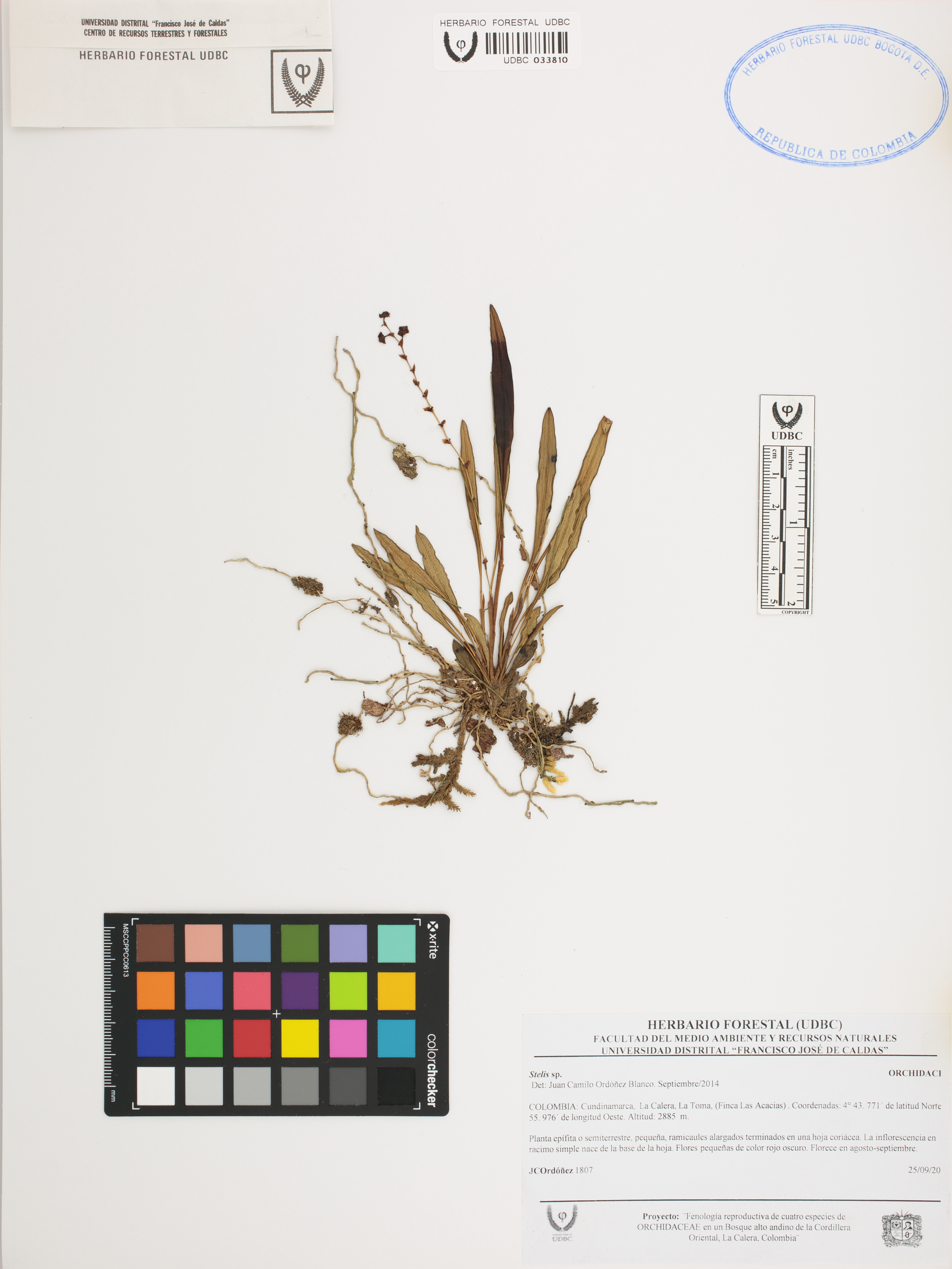 Fotografía del ejemplar Ordóñez, J. 1807, determinado como Stelis sp. en el año 2014