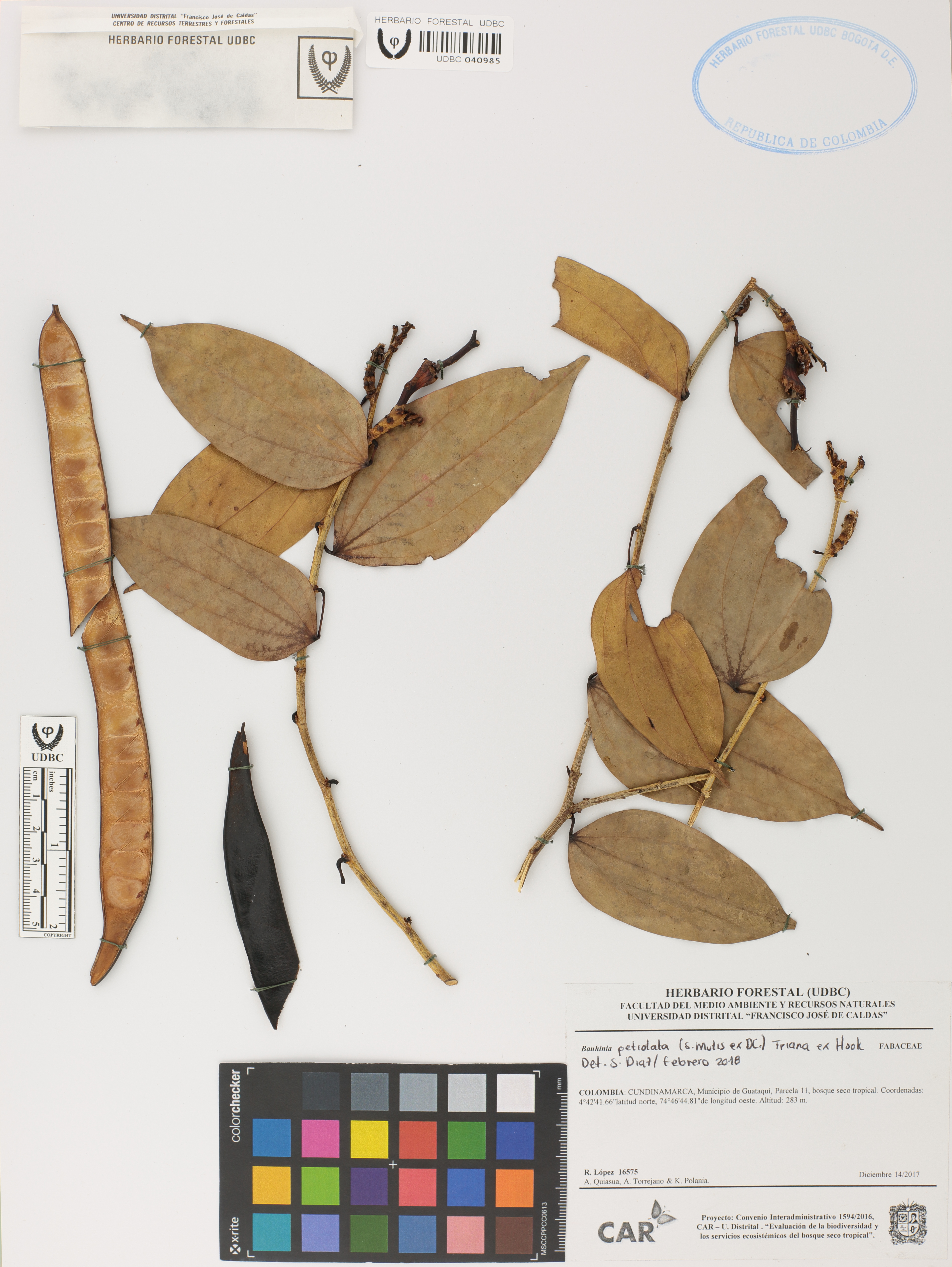 Fotografía del ejemplar López, R. 16575, determinado como Bauhinia petiolata en el año 2018