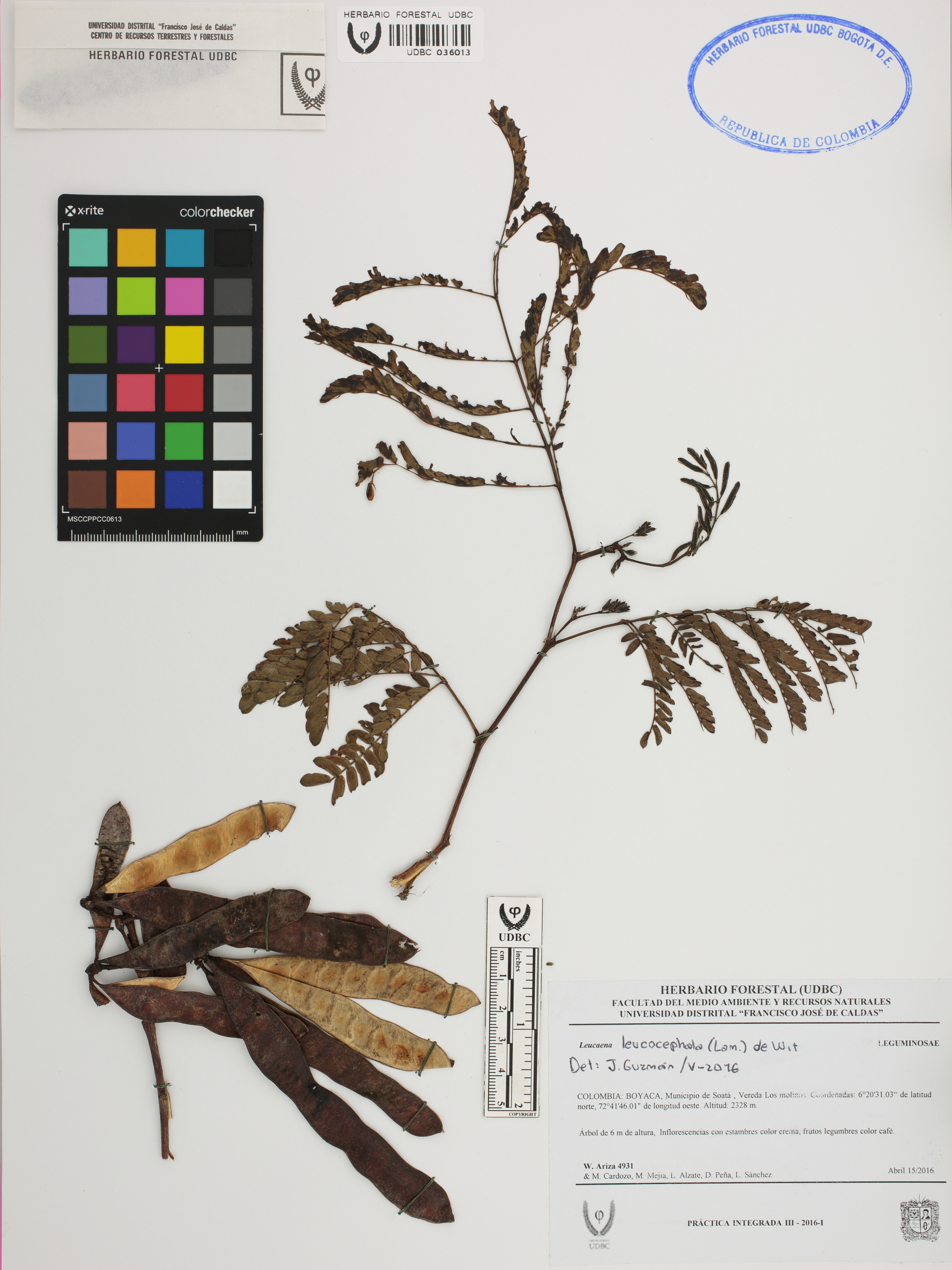 Fotografía del ejemplar Ariza, W. 4931, determinado como Leucaena leucocephala en el año 2016
