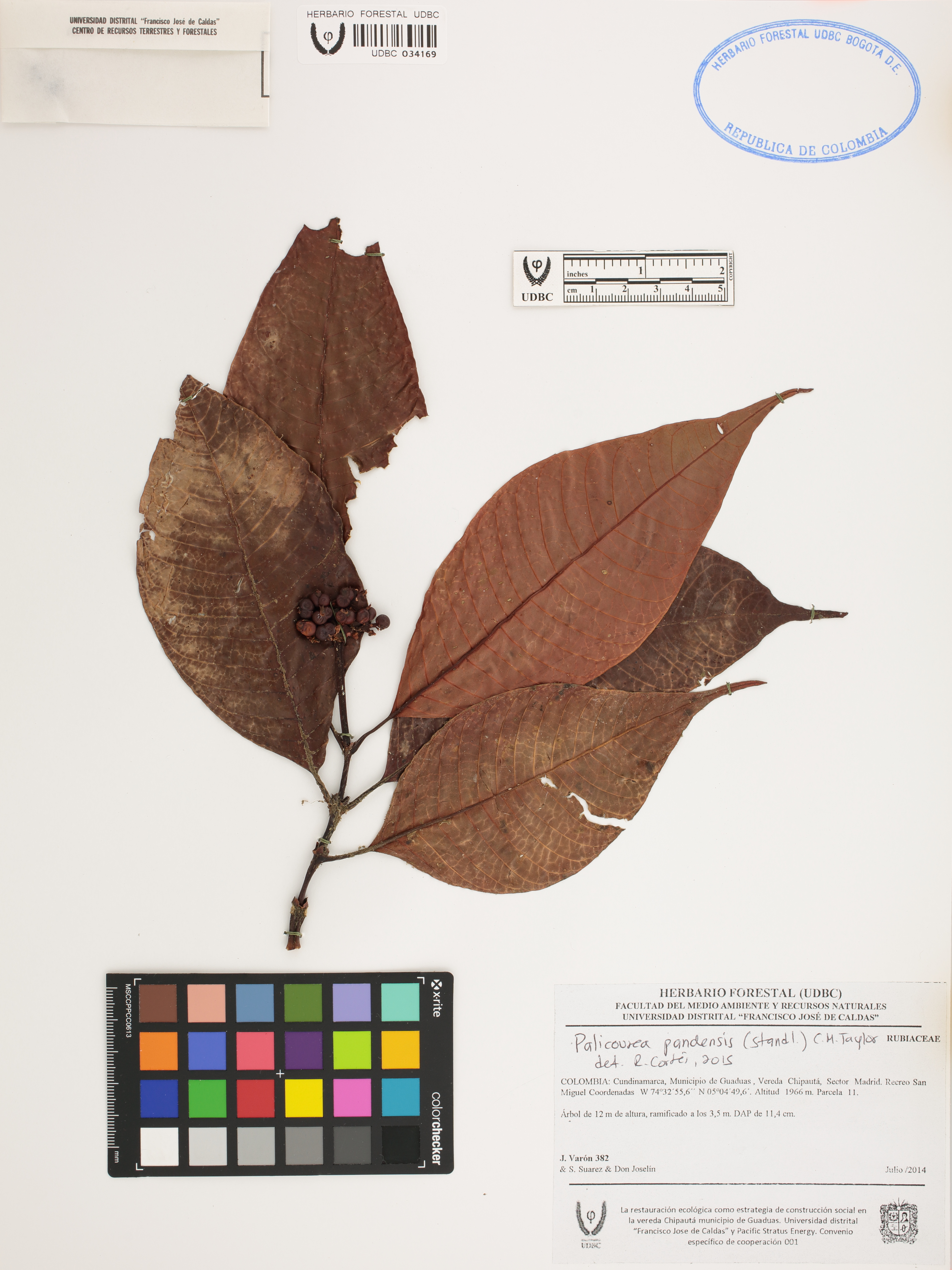Fotografía del ejemplar Varón, J. 382, determinado como Palicourea pandensis en el año 2015