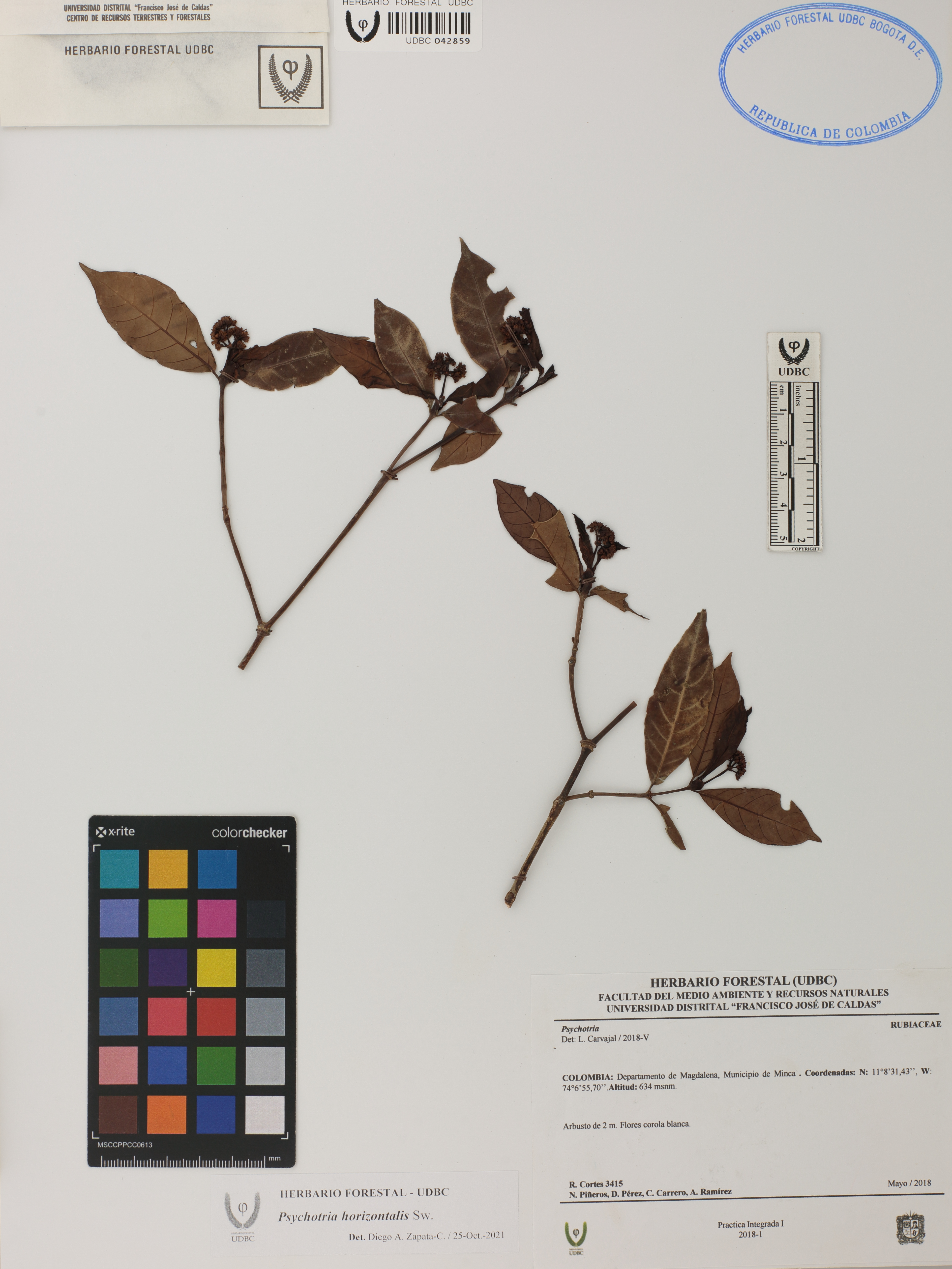 Fotografía del ejemplar Cortés, R. 3415, determinado como Psychotria horizontalis en el año 2021