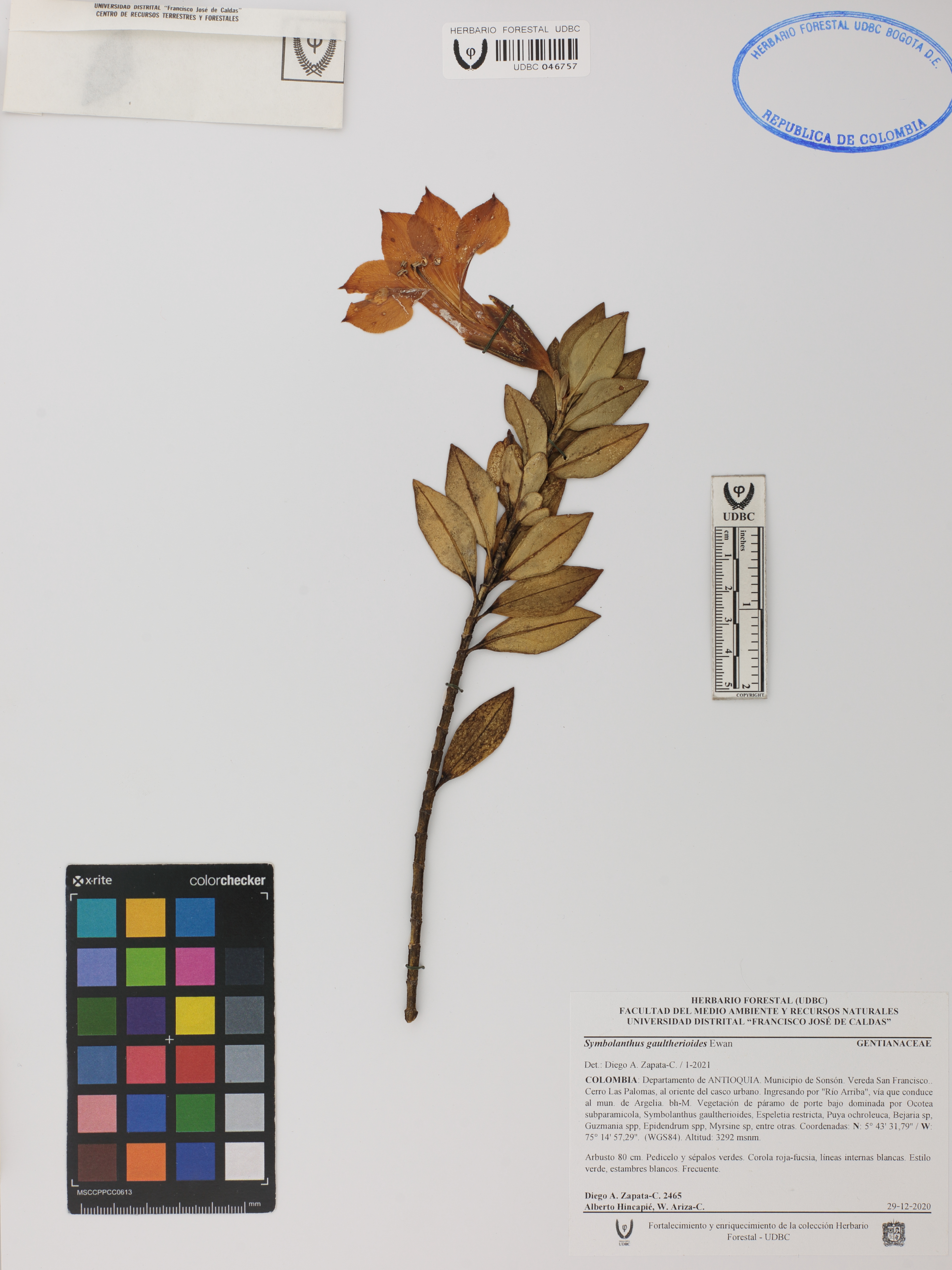 Fotografía del ejemplar Zapata-C., D. 2465, determinado como Symbolanthus gaultherioides en el año 2021