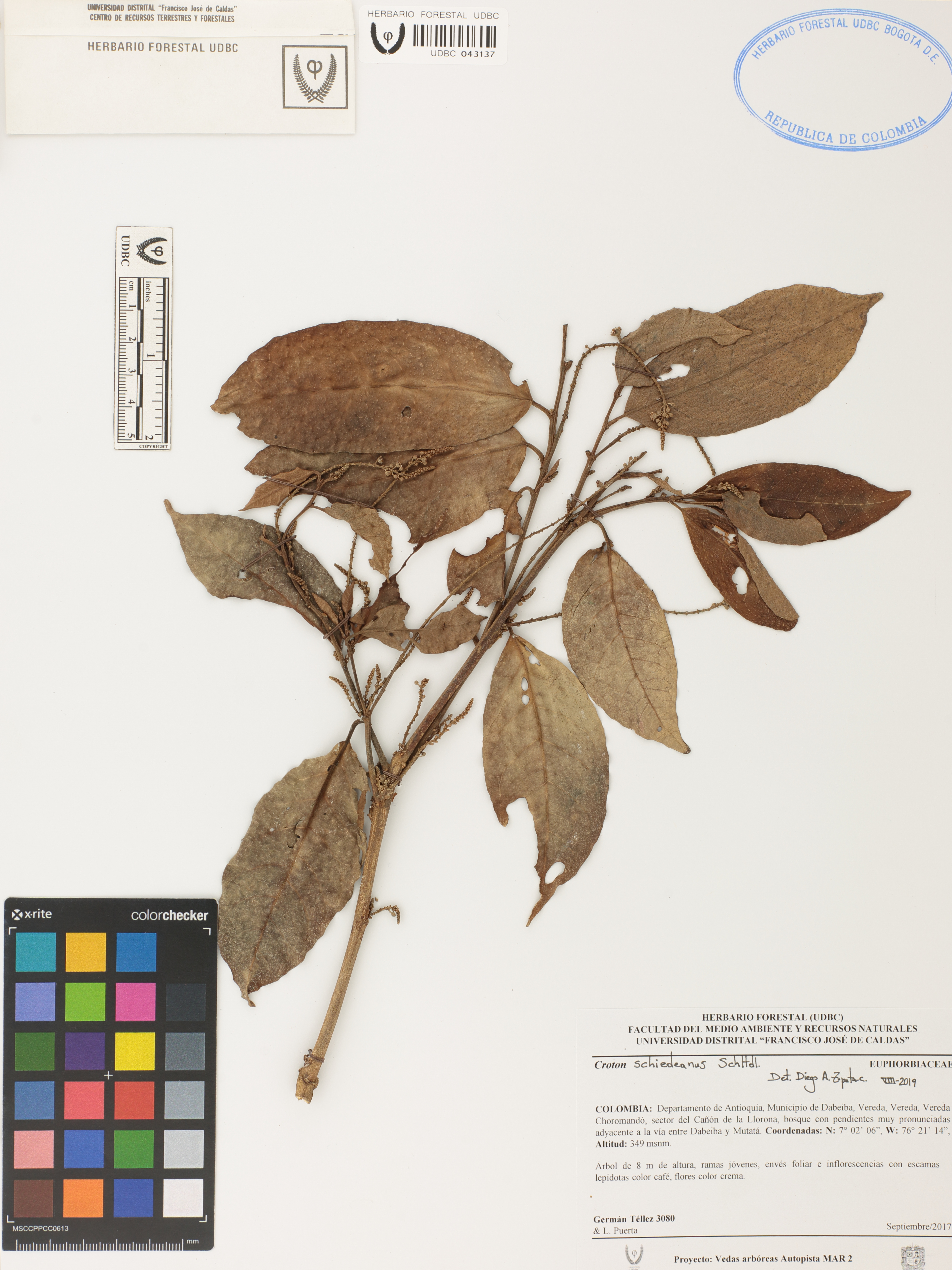 Fotografía del ejemplar Téllez, G. 3080, determinado como Croton schiedeanus en el año 2019